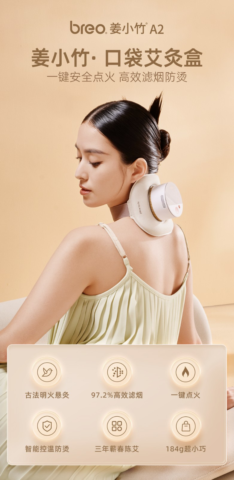 (巨邦佑)R+倍轻松姜小竹A2标准版艾灸盒 月白色 家用便携无烟电子艾灸盒艾灸仪 送男女朋友生日新年礼物