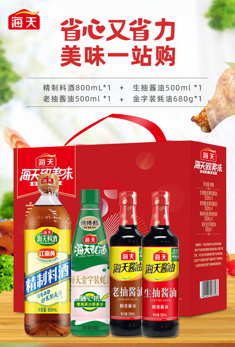 商品名称:(巨邦佑)R+海天·致美味-美味有礼调味品礼盒1800ml+680g