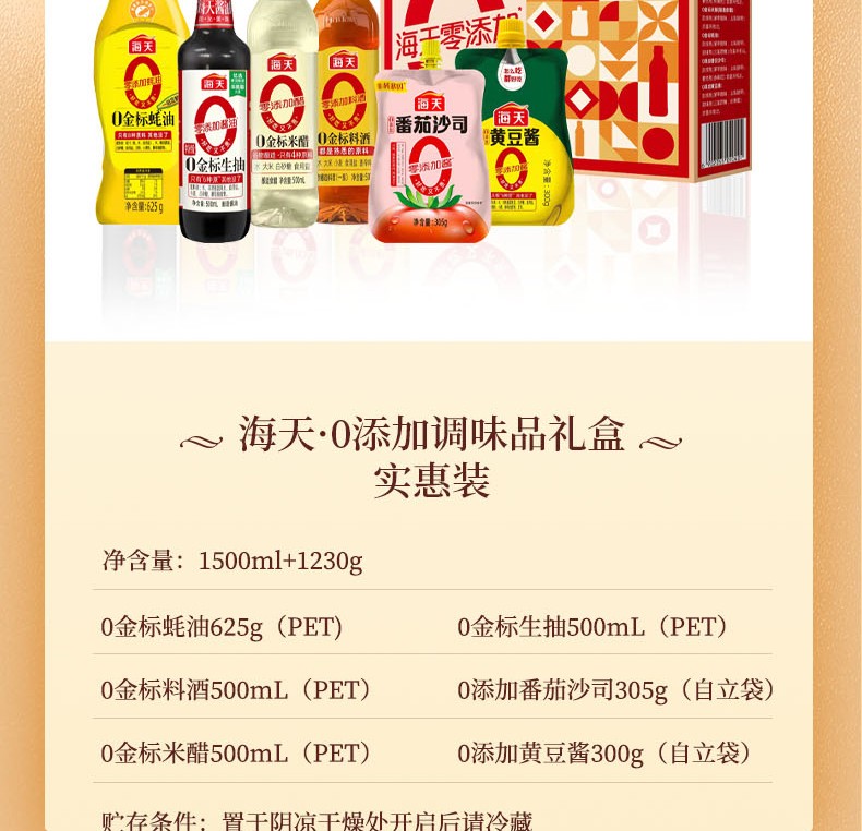 商品名称:(巨邦佑)R+海天·0添加调味品礼盒-实惠装1500ml+1230g
