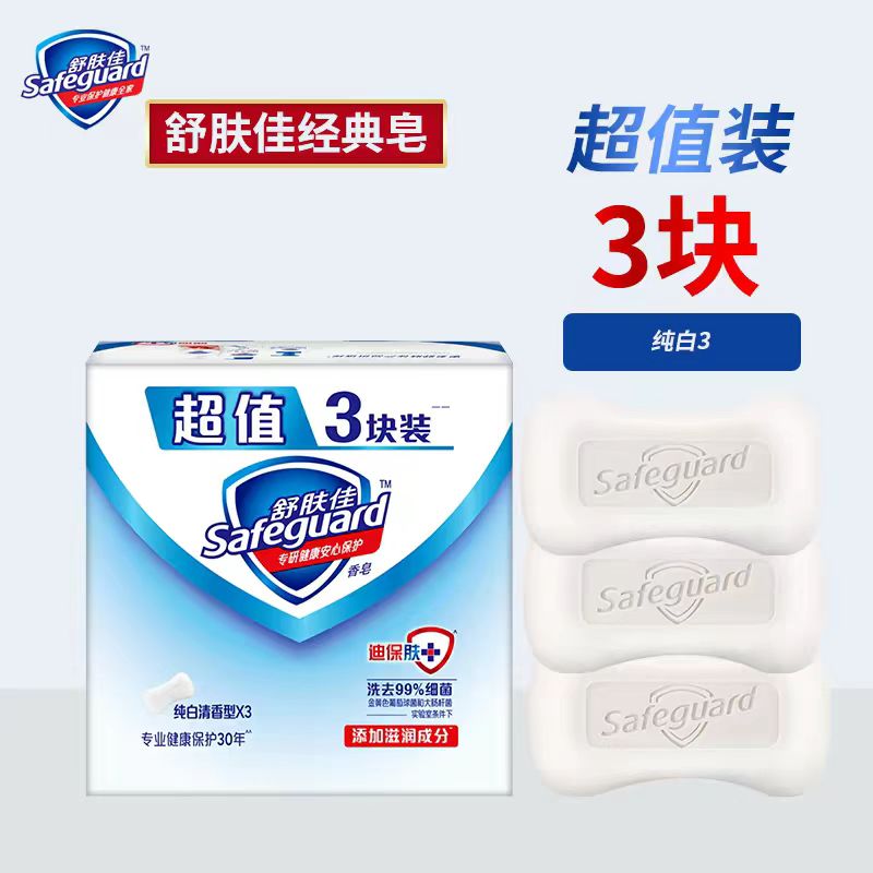 商品名称:(中百)舒肤佳香皂超值三块装(纯白,柠檬,芦荟),随机发货香型可备注 清洁爽肤干净沐浴洗澡洗手除菌香皂清香
