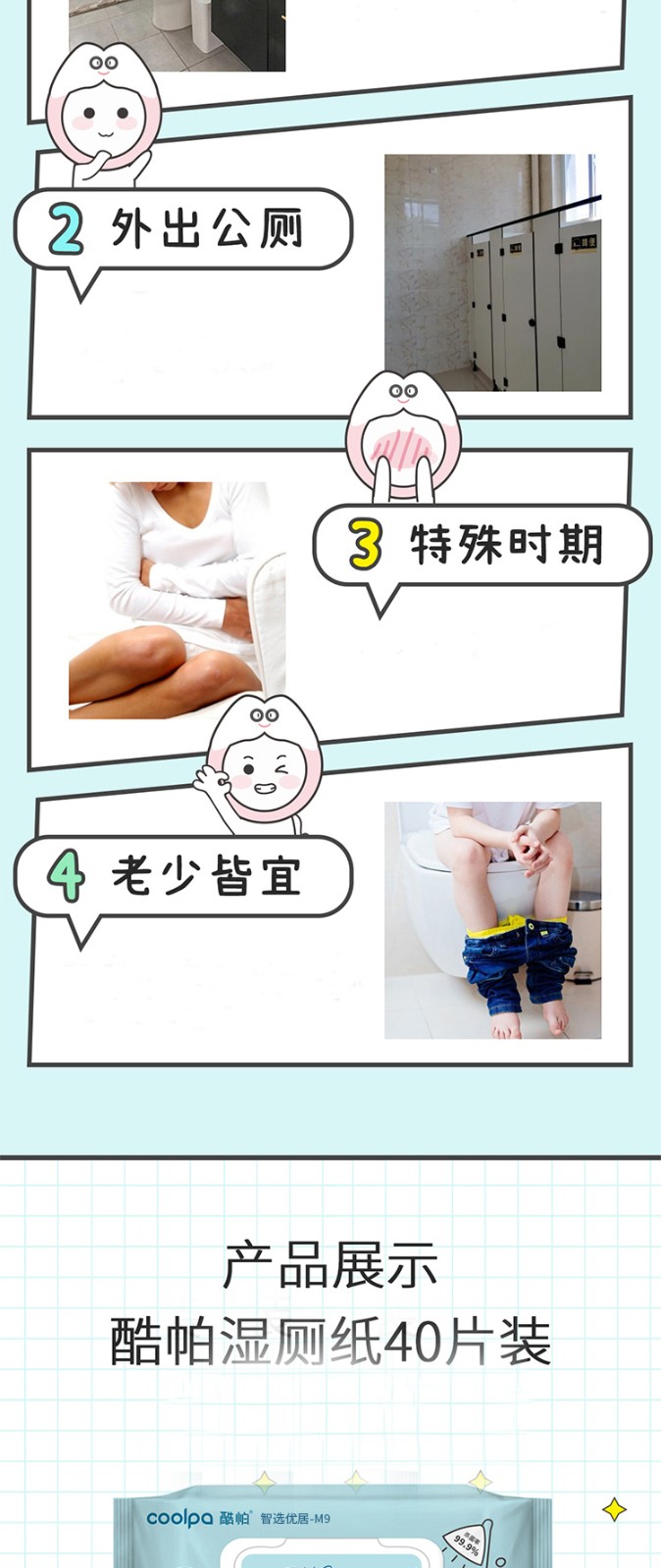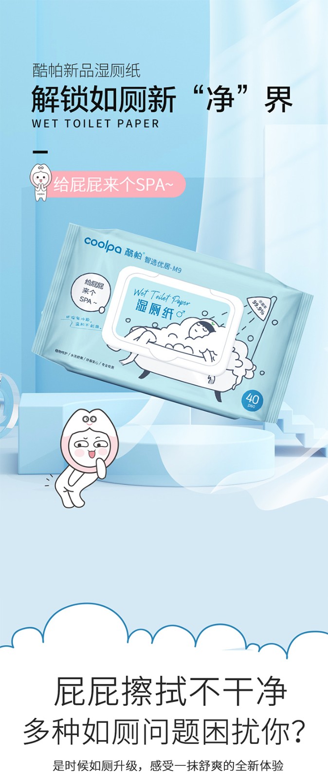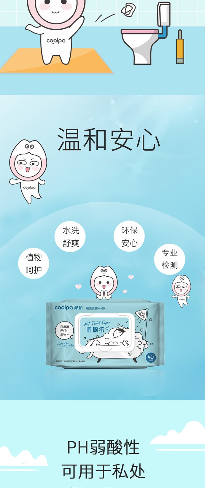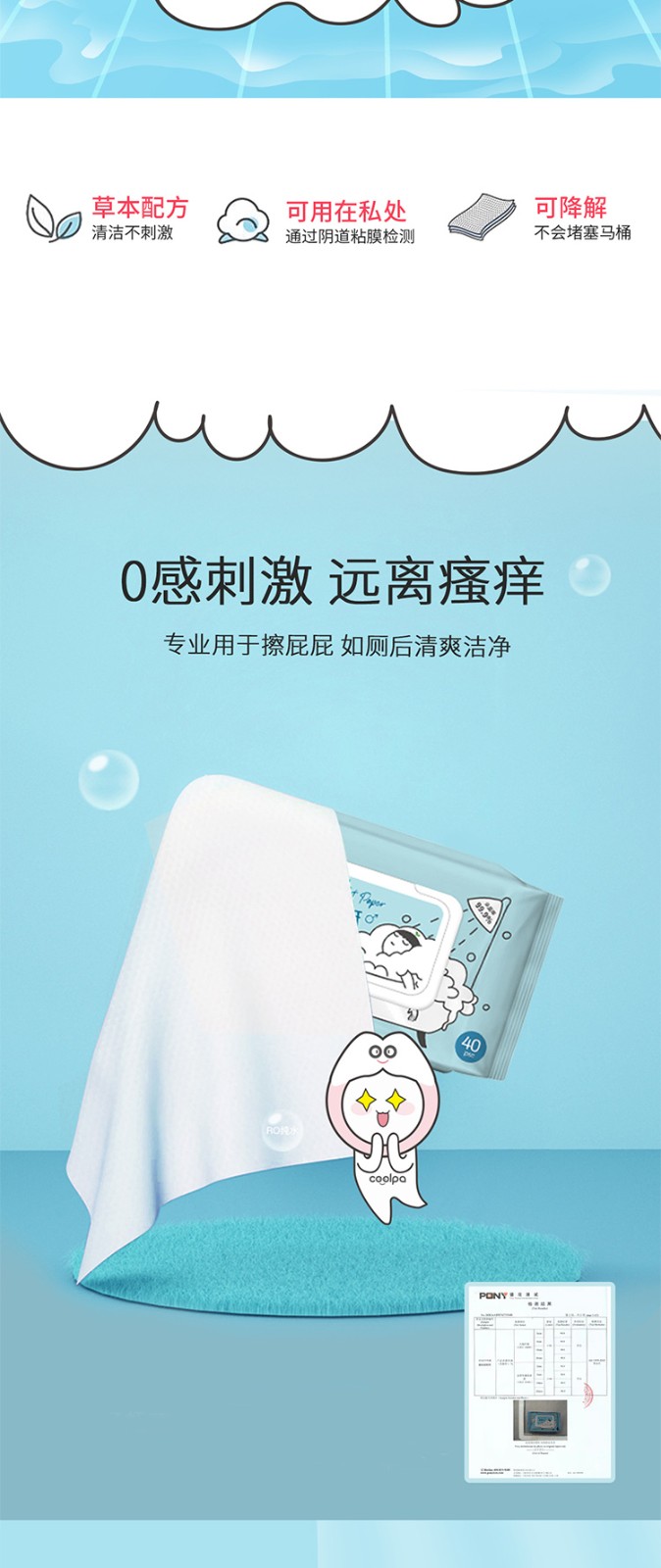 商品名称:(世星阳光)+酷帕 除菌40抽湿厕纸*10包 SCZ-1(蓝色) 草本精华 呵护娇嫩肌肤 易冲散 不怕堵