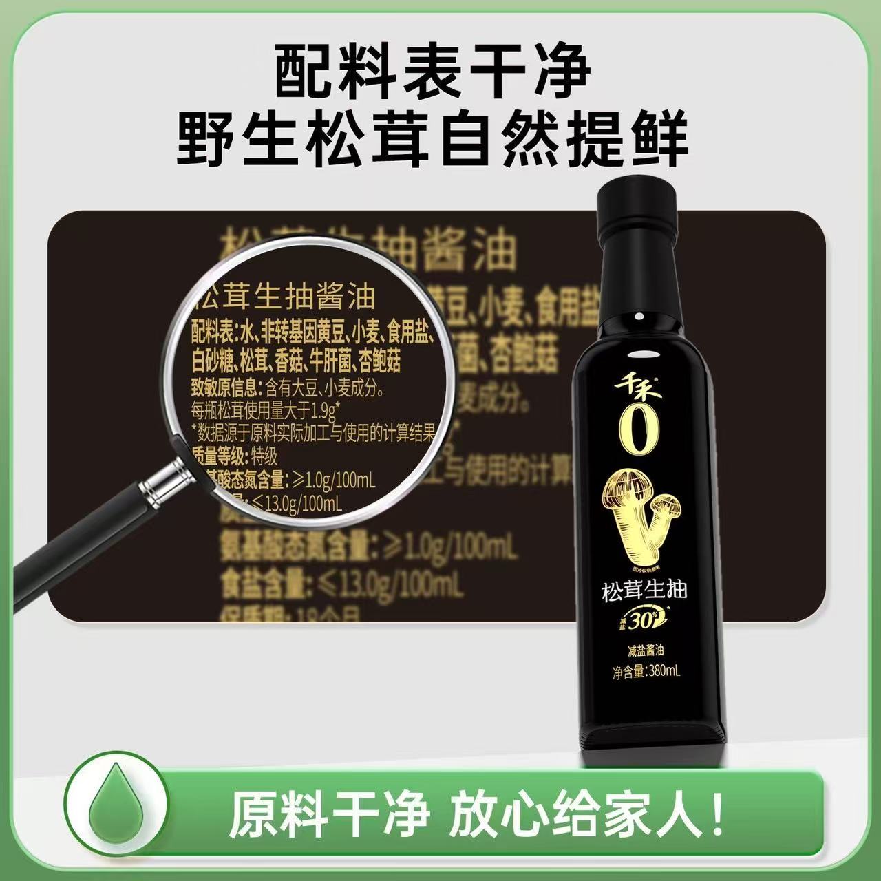 商品名称:(中百)千禾松茸生抽酱油380ml酿造酱油炒菜凉拌减盐生抽