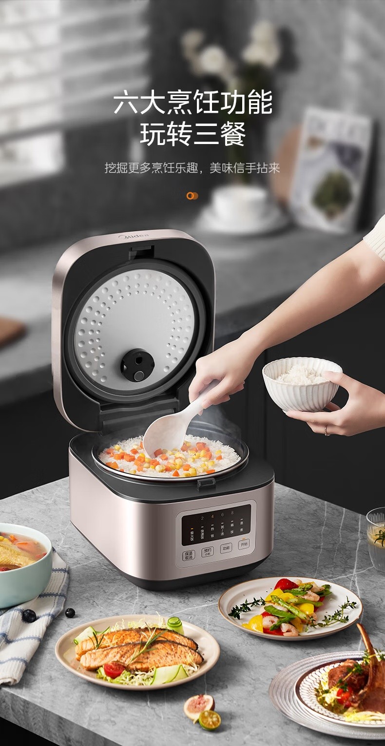 (世星阳光)+美的 电饭煲 4L FB4052R 匠铜聚能釜内胆隐藏式微压焖香阀 智能预约 高效储热口口软糯
