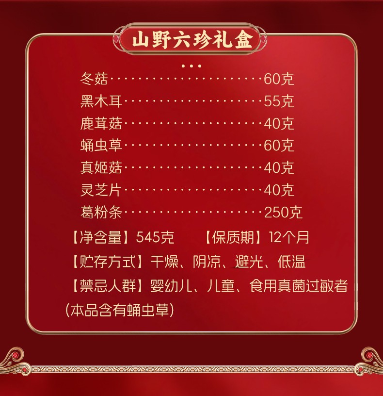 商品名称:(巨邦佑)T+ (yp)宁正丰 年货礼盒(山野六珍礼盒)公司福利礼包菌菇山珍送礼545g盒