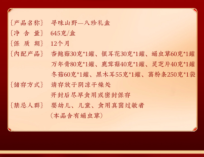 (巨邦佑)T+ (yp)宁正丰寻味山野—八珍礼盒团购福利品645g盒