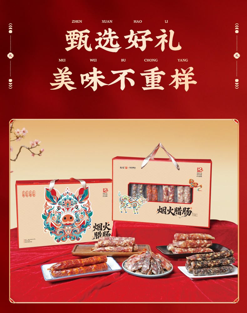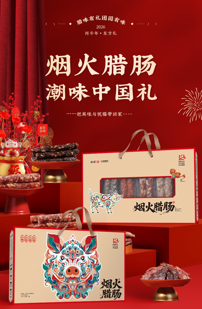(巨邦佑)T+ (yp)宁正丰腊味烟火-烟火腊肠礼盒腊味年货大礼包600g盒