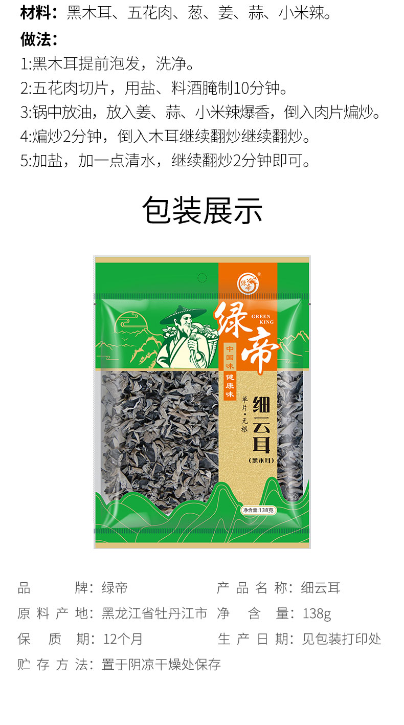 商品名称:(世星阳光)+绿帝细云耳138g 严选品质 烹饪佳品