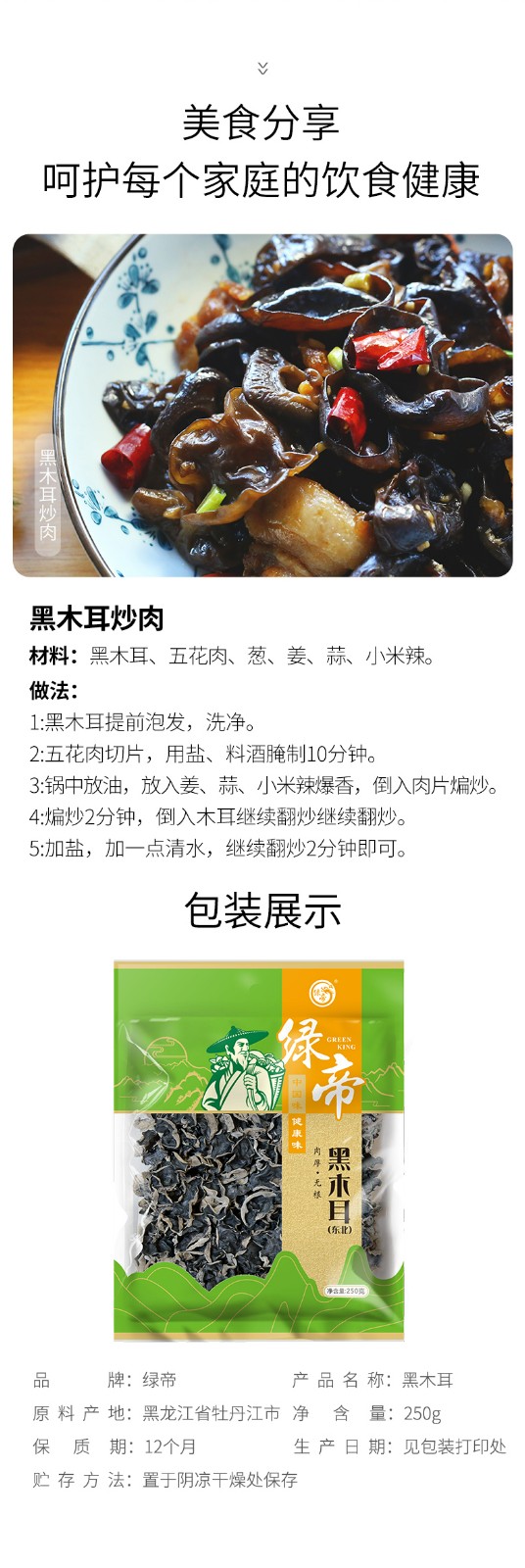 商品名称:(世星阳光)+绿帝黑木耳250g 严格品质 烹饪佳品