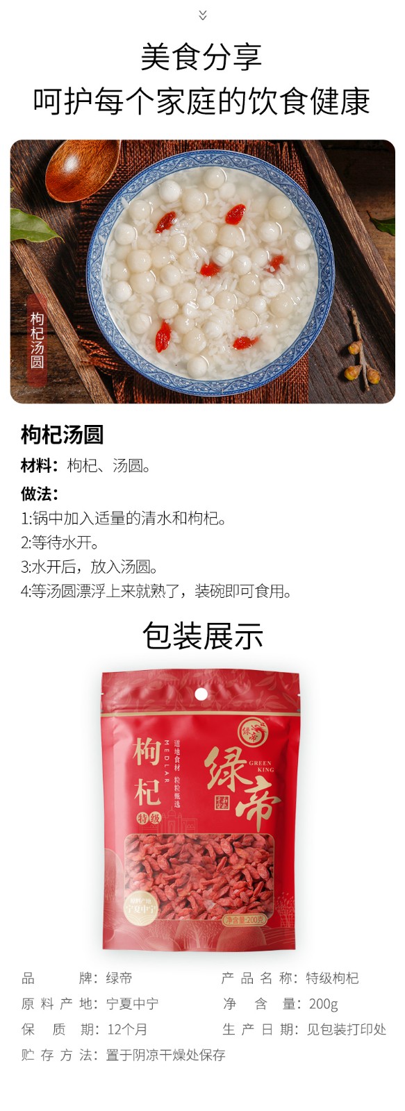 商品名称:(世星阳光)+绿帝枸杞(特级)200g 严格挑选 口感香甜