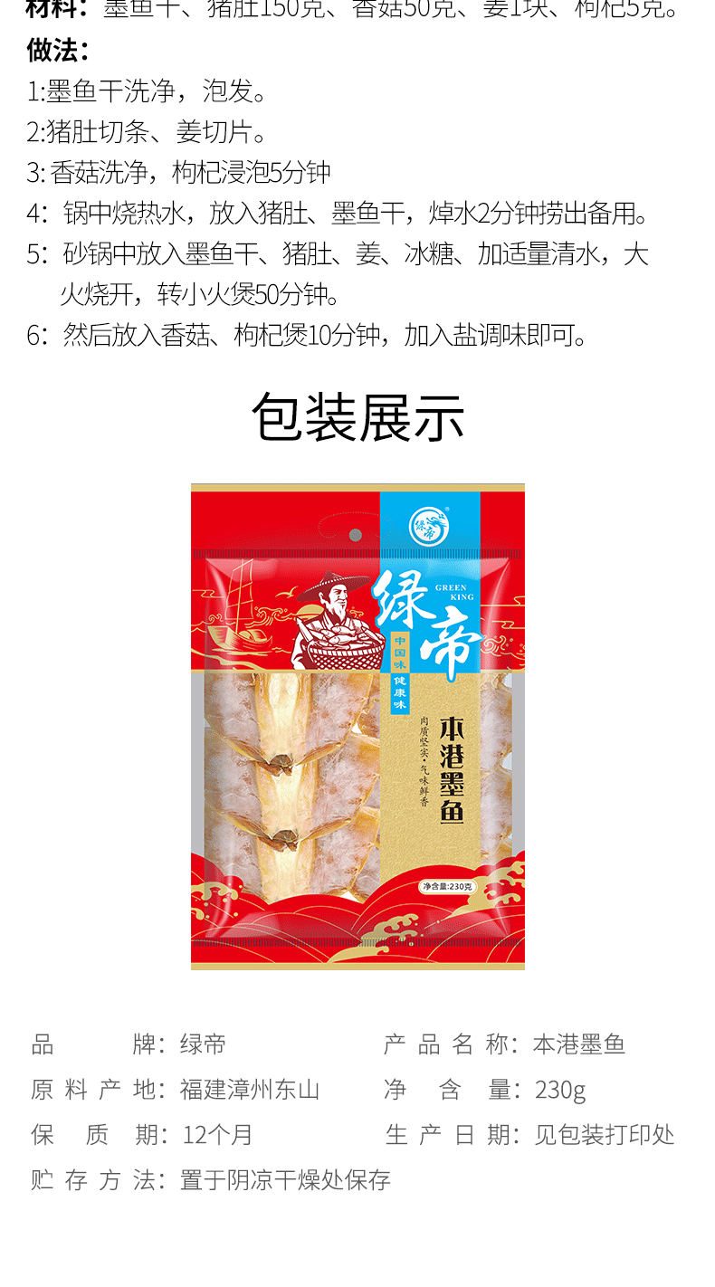 商品名称:(世星阳光)+绿帝本港墨鱼230g 上好食材 口感鲜美