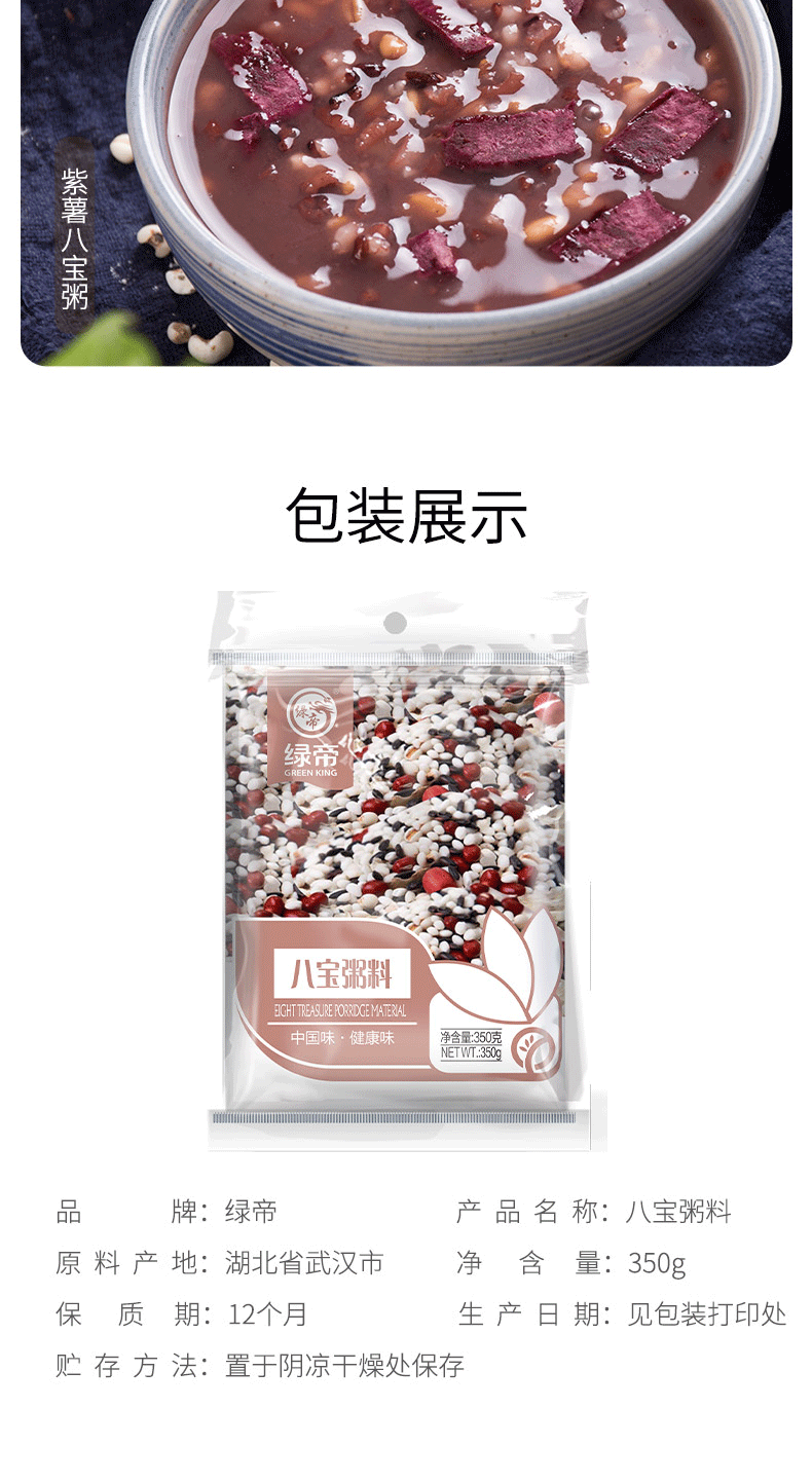 商品名称:(世星阳光)+绿帝八宝粥料350g*3袋 严格挑选 清香粘稠