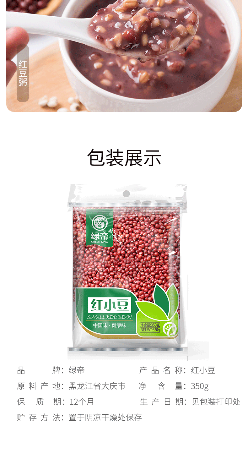 商品名称:(世星阳光)+绿帝红小豆350g*2袋 严格挑选 绵密出沙