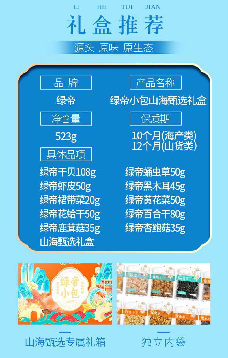 商品名称:(世星阳光)+绿帝山海甄选礼盒523g 独立内袋 营养搭配 源头 原味 原生态