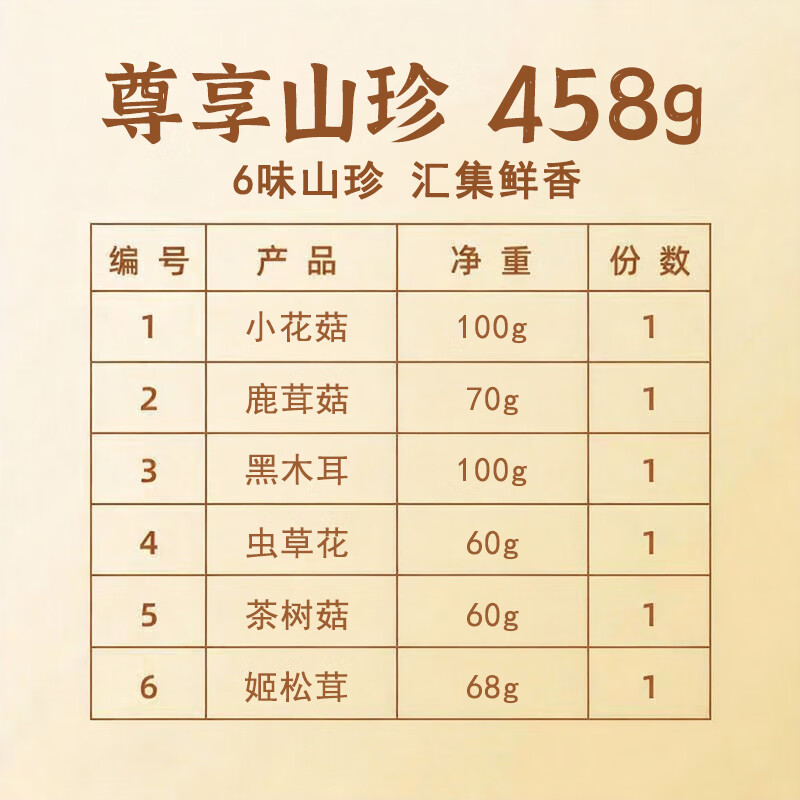 商品名称:(巨邦佑)BJ+雅仁尊享山珍菌菇礼盒 458g 尊享山珍甄选优品