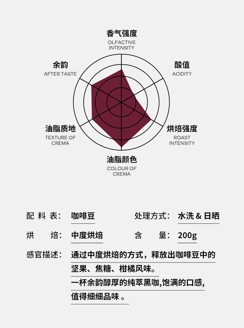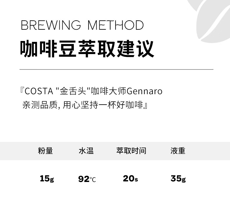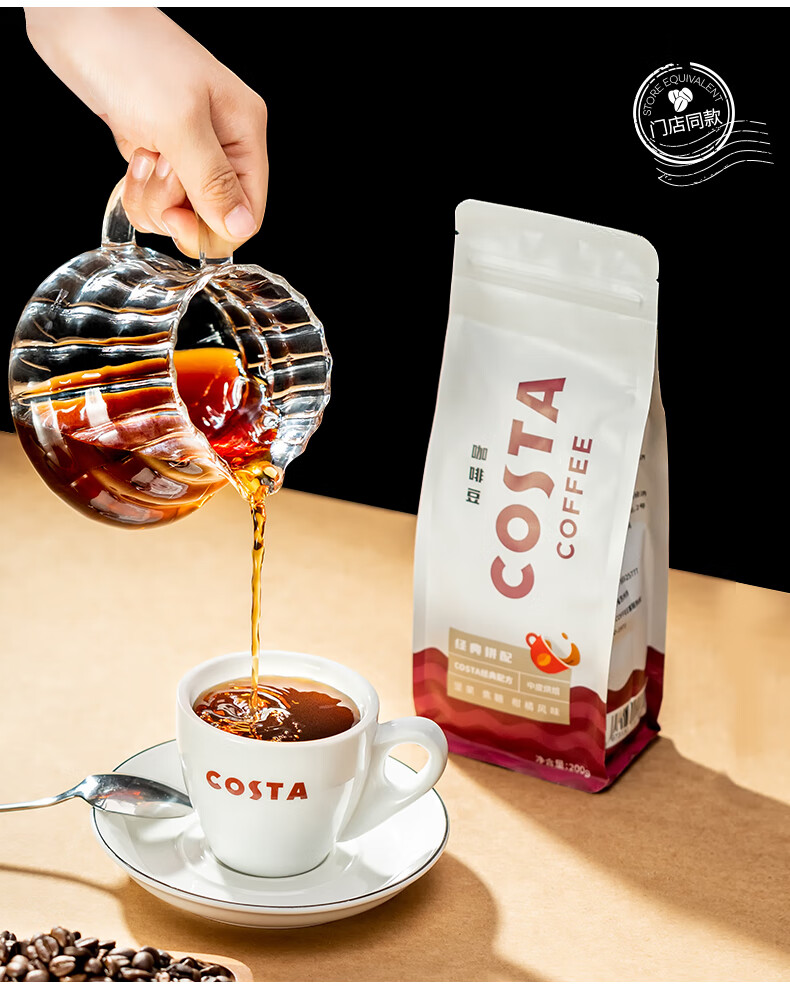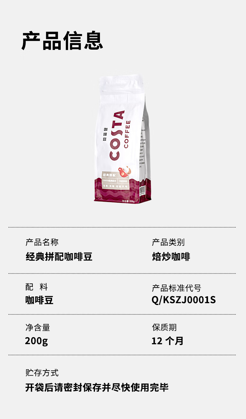 商品名称:(巨邦佑)BJ+COSTA 经典拼配咖啡豆 200g 中度烘焙坚果焦糖柑橘风味