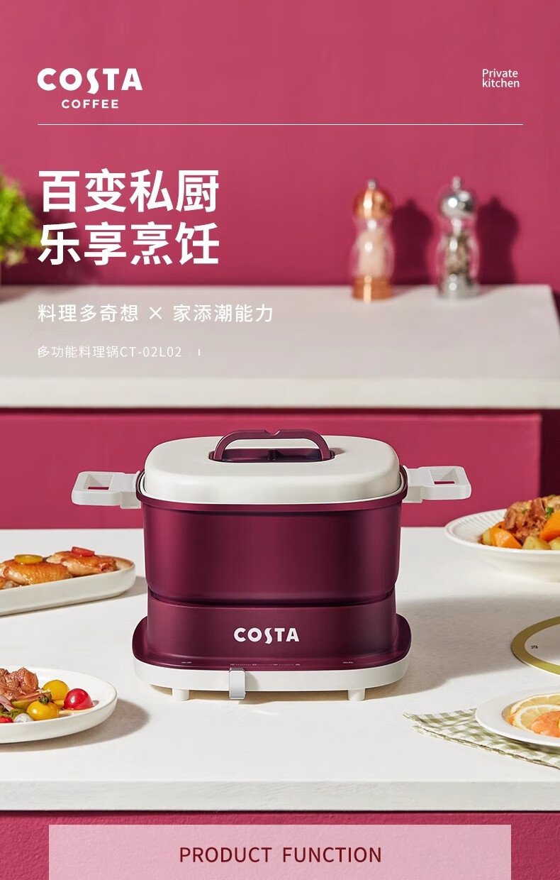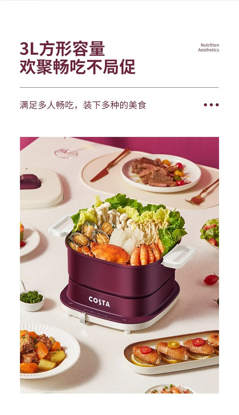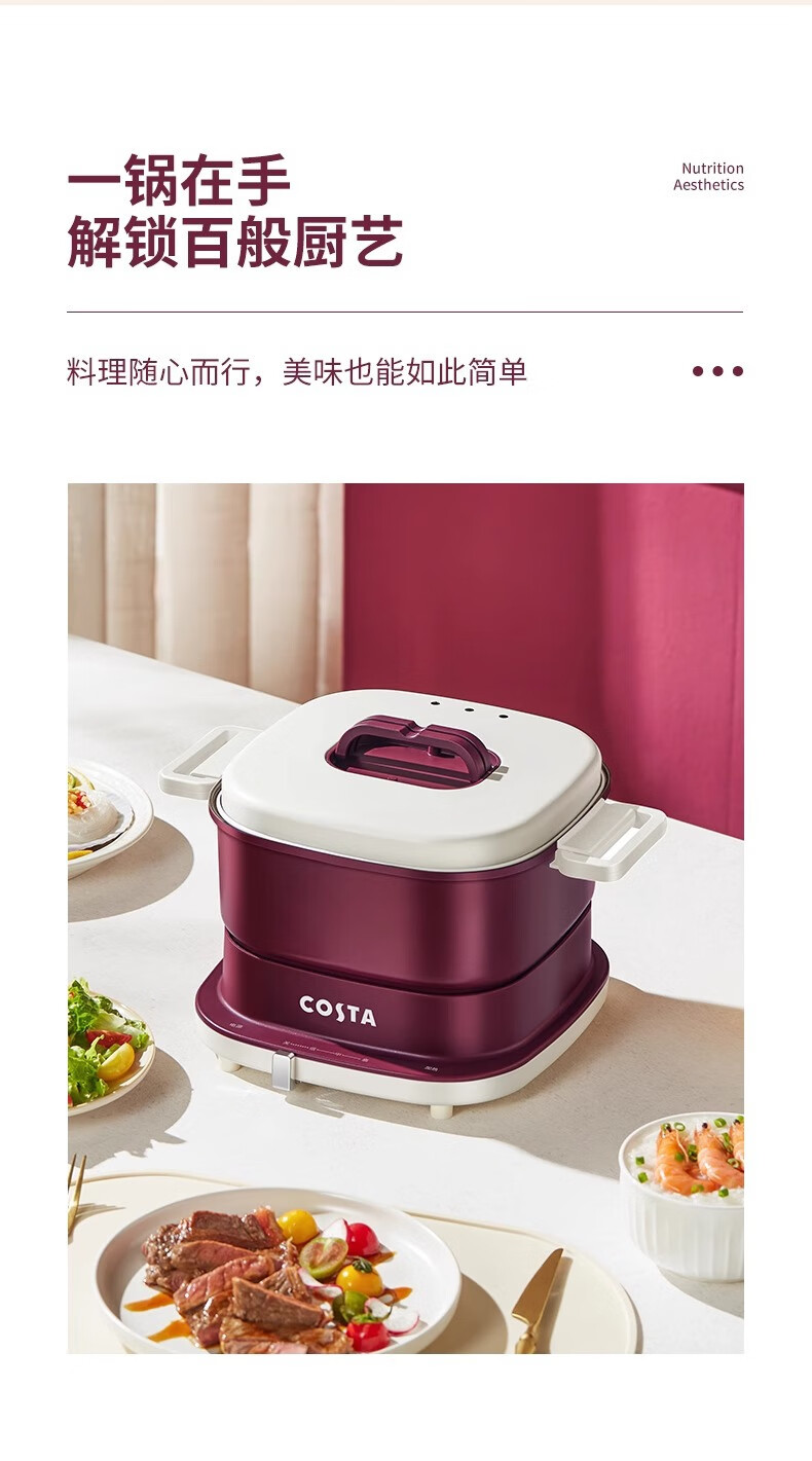 (巨邦佑)BJ+COSTA 多功能料理锅 3L CT-02L02 收纳底座防烫提手