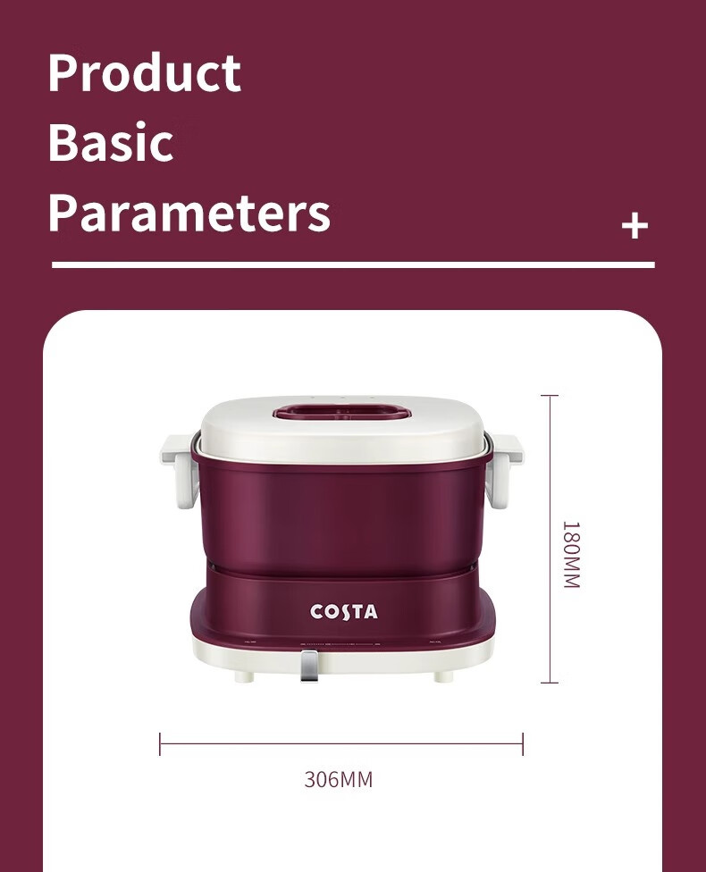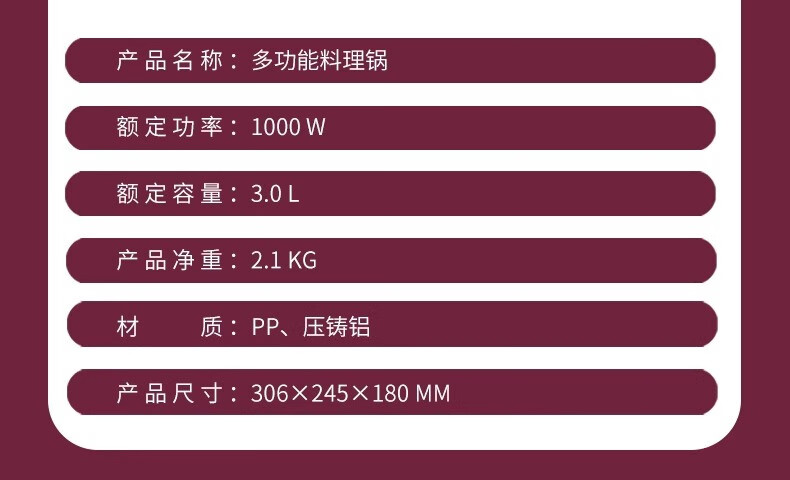 商品名称:(巨邦佑)BJ+COSTA 多功能料理锅 3L CT-02L02 收纳底座防烫提手