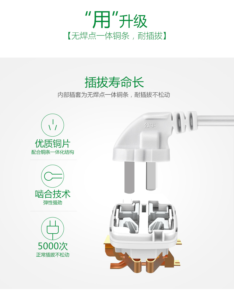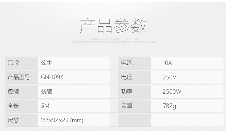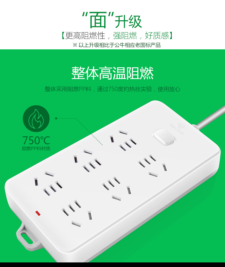 商品名称:(世星阳光)+公牛 新国标插座 6位总控全长5米 109K 优良铜件插套 耐拔插不易松动 轻松按压 通断电一键掌控 不用费力拔插头
