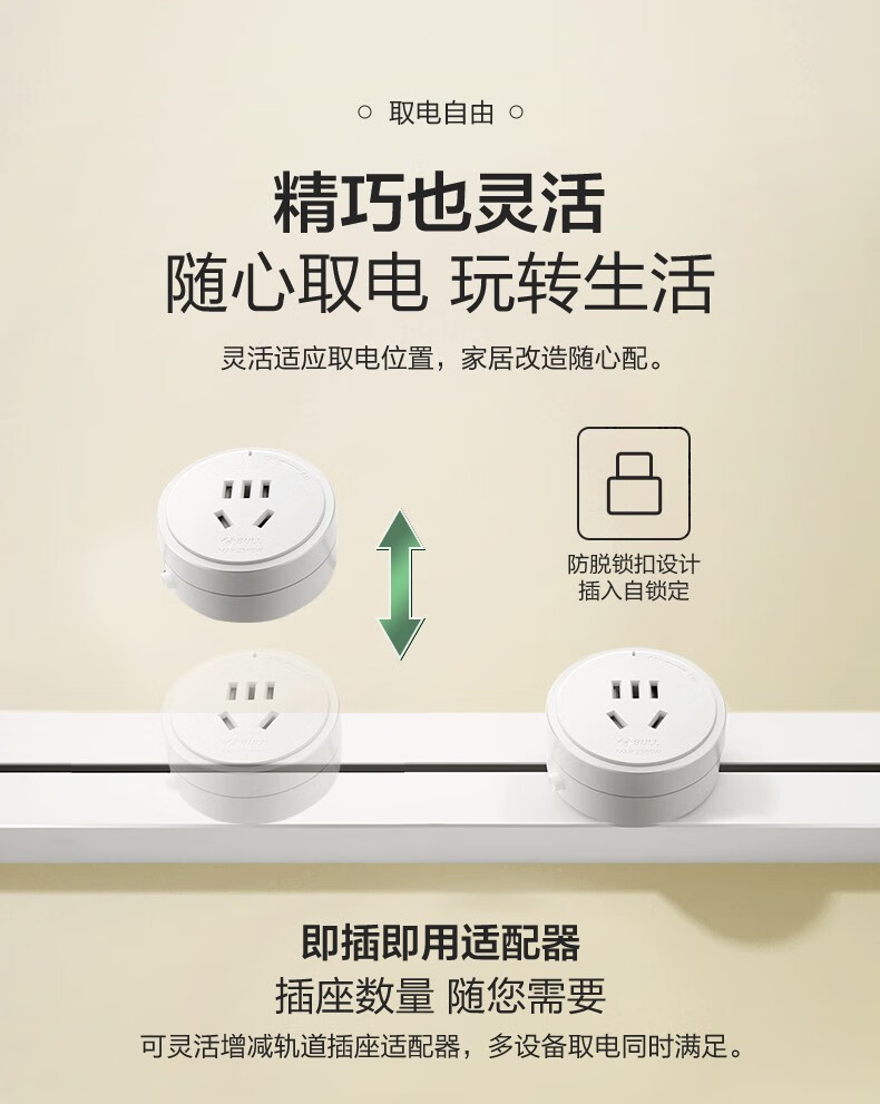 商品名称:(世星阳光)+公牛 白色MINI明装轨道插座 75cm+4个五孔 1.8M GB1A 灵活适应取电位置 家居改造随心配 可灵活增减轨道插座适配器 多设备取电同时满足