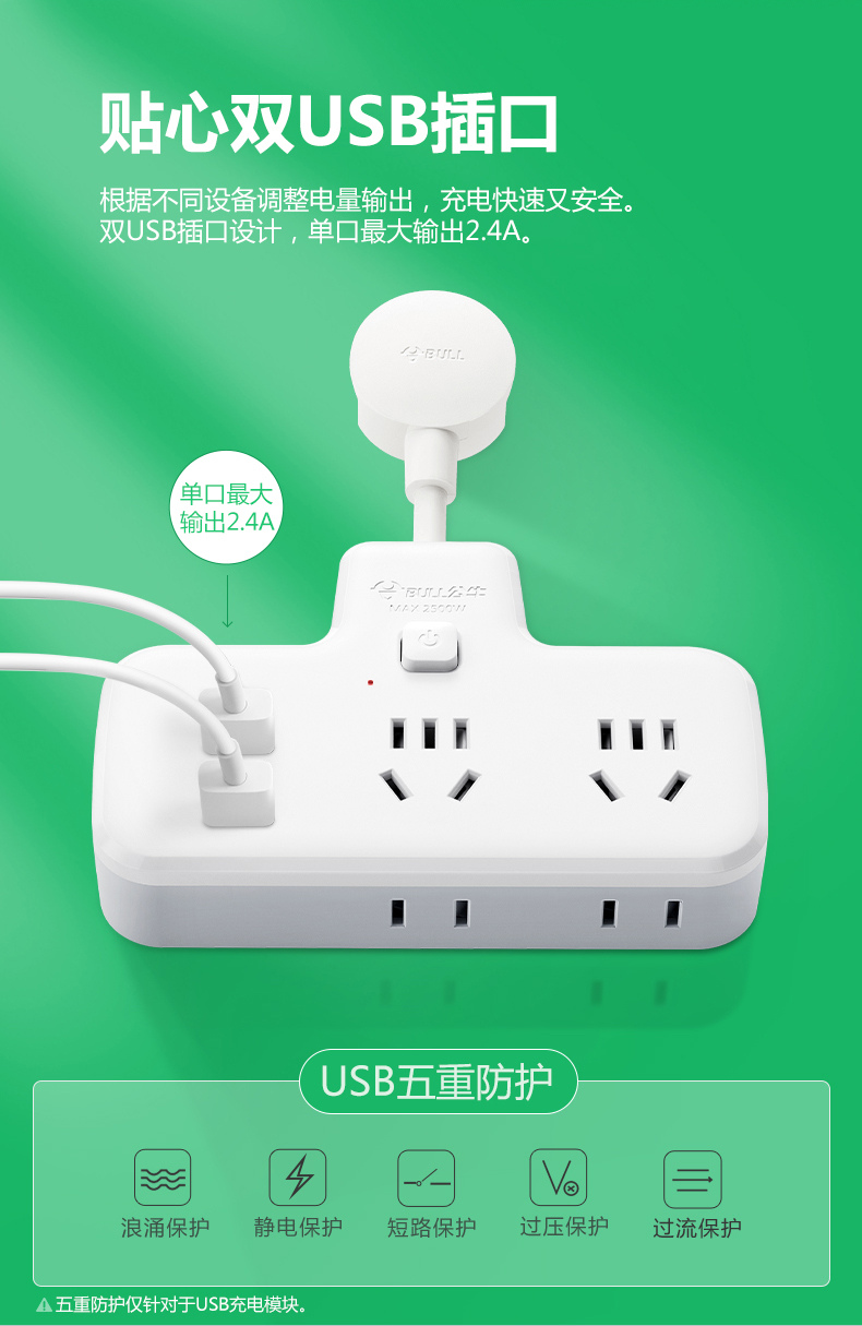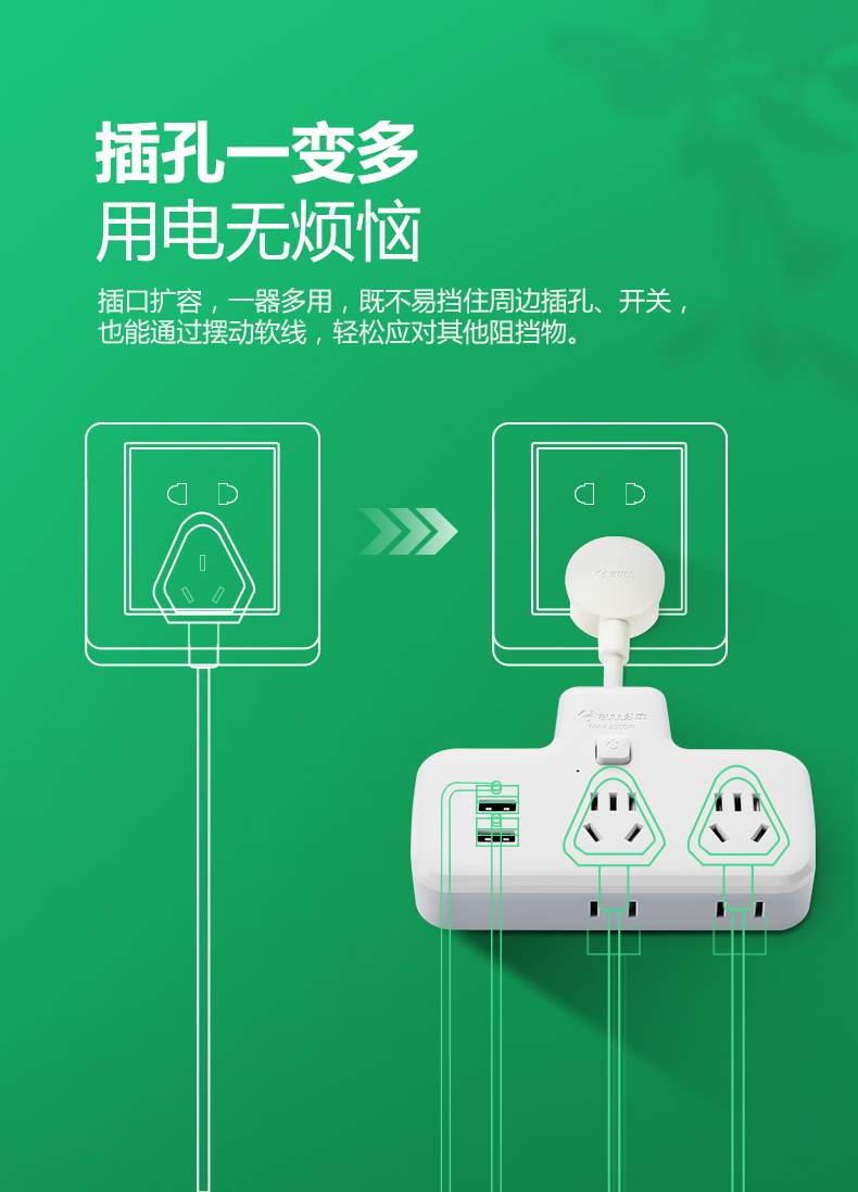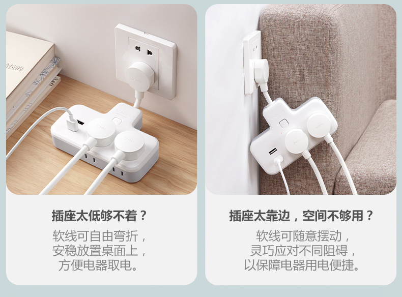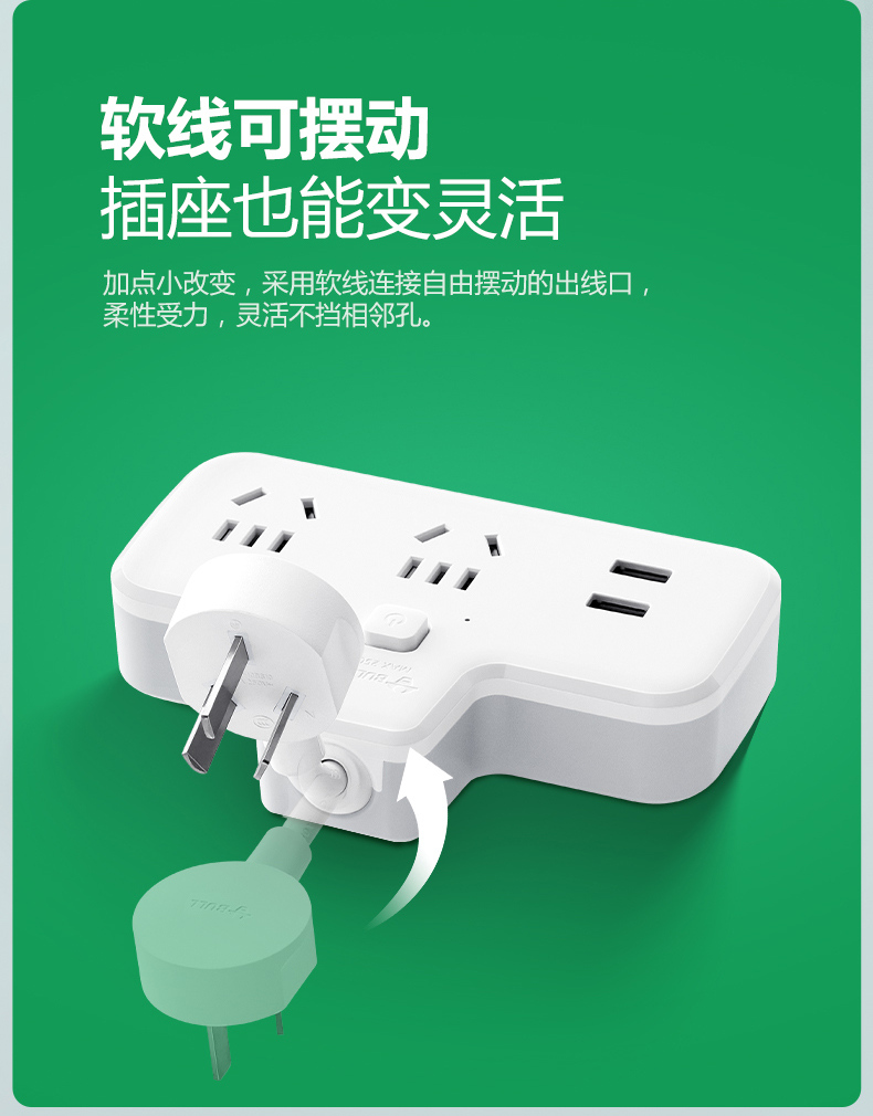商品名称:(世星阳光)+公牛 一转多插座 GN-9722Q 柔性可摆动插头灵活取电 短线设计稳固防松脱
