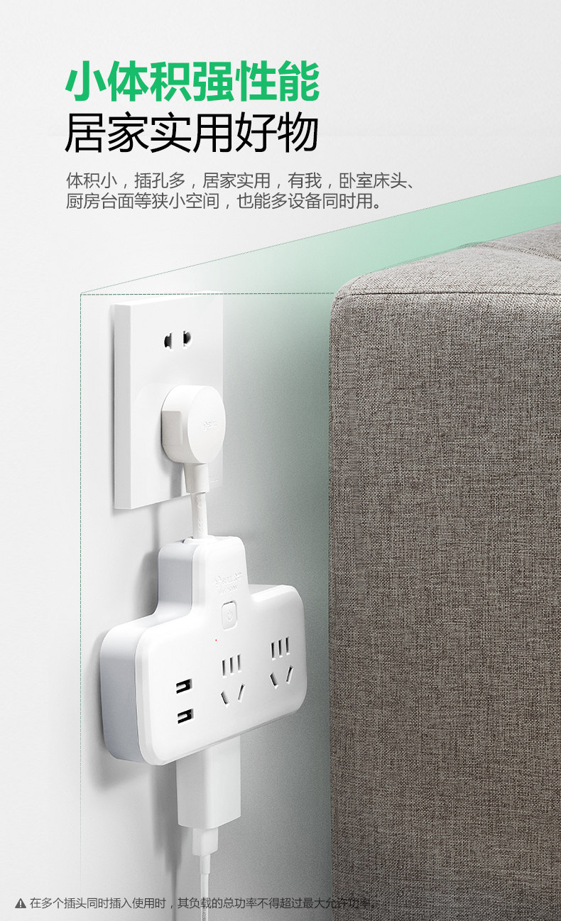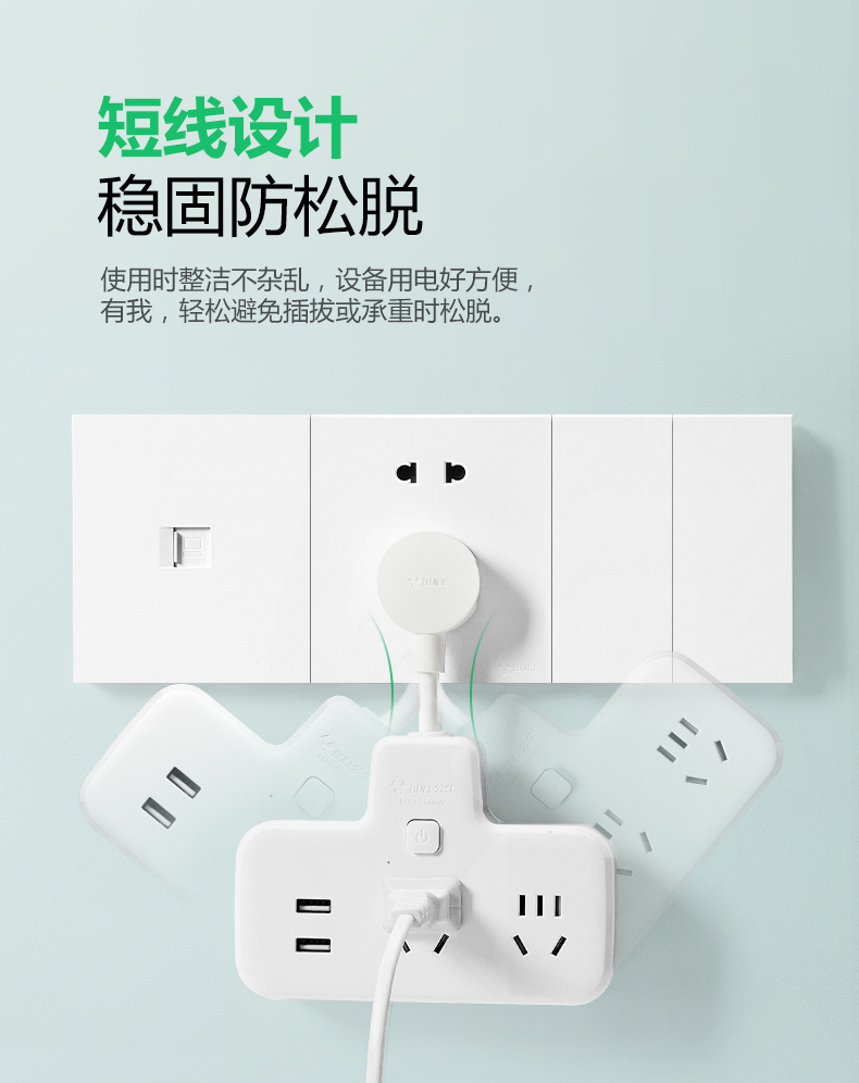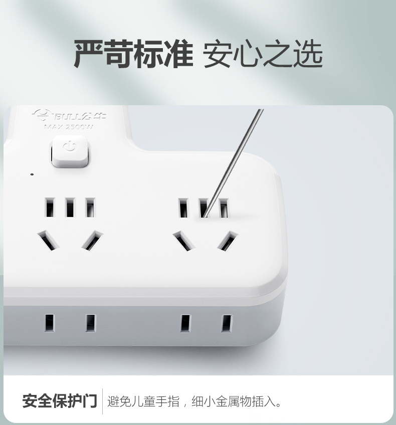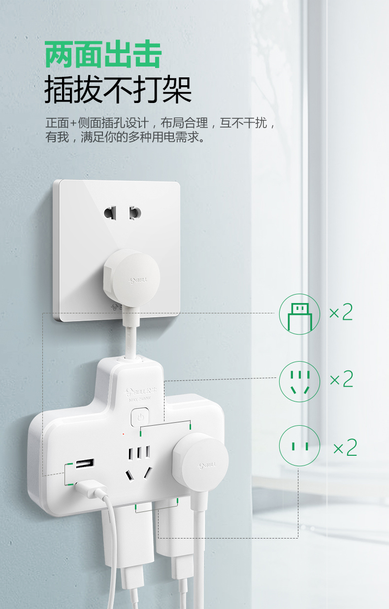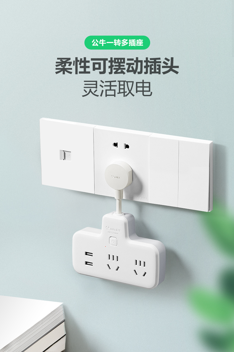 (世星阳光)+公牛 一转多插座 GN-9722Q 柔性可摆动插头灵活取电 短线设计稳固防松脱