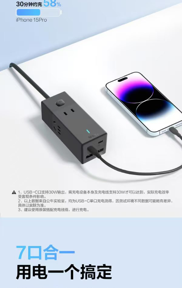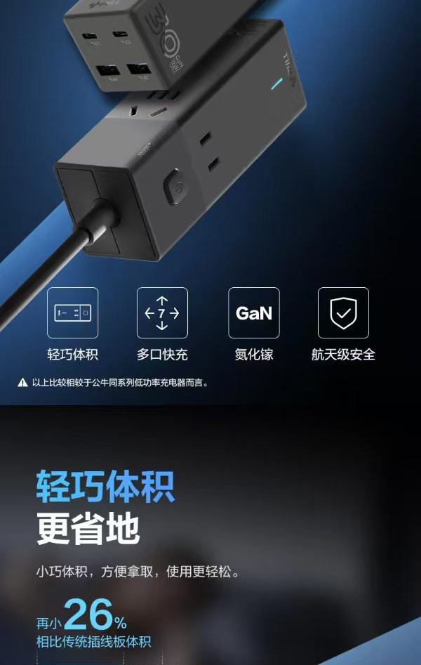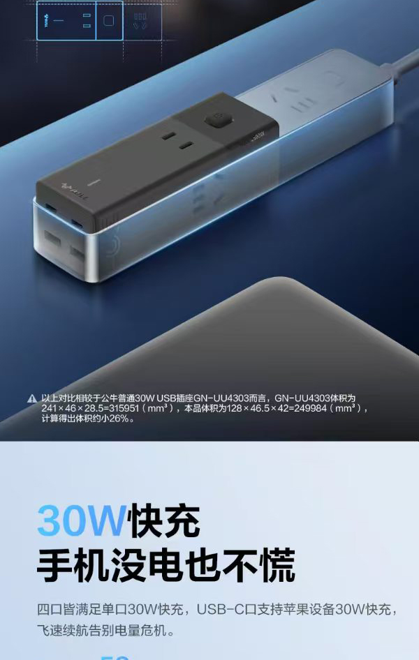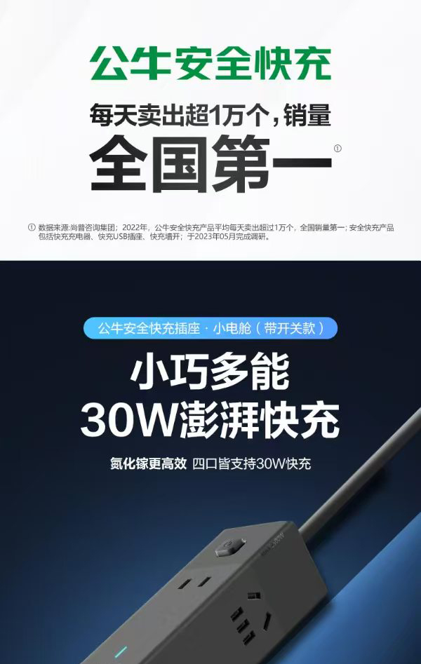 商品名称:(世星阳光)+公牛 氮化镓30W便携插座充电器快充插座(B195)MC1303M