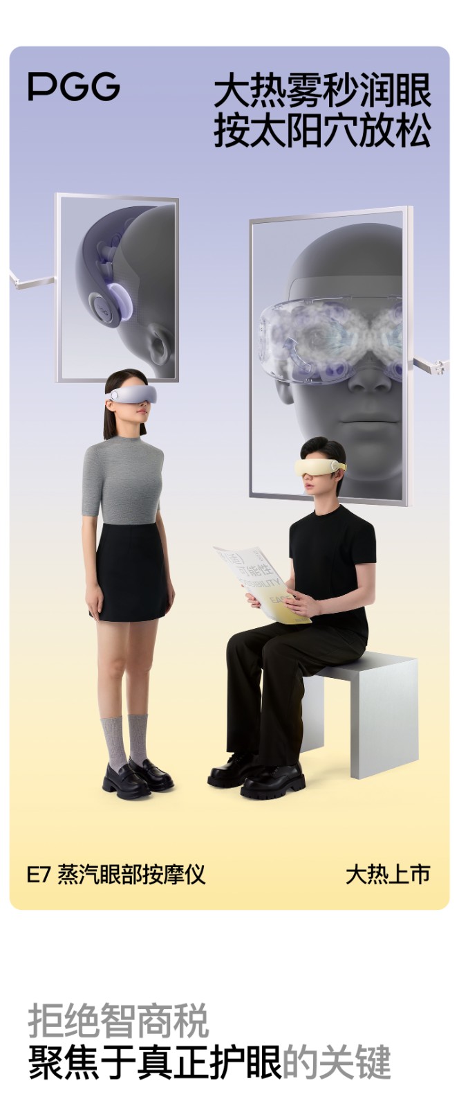(超运·禾贸)PGG e7蒸汽眼部按摩仪 云雾紫 蒸汽眼罩护眼仪热敷眼睛疲劳舒缓神器干眼症雾化气囊新年生日礼物女朋友男士灰