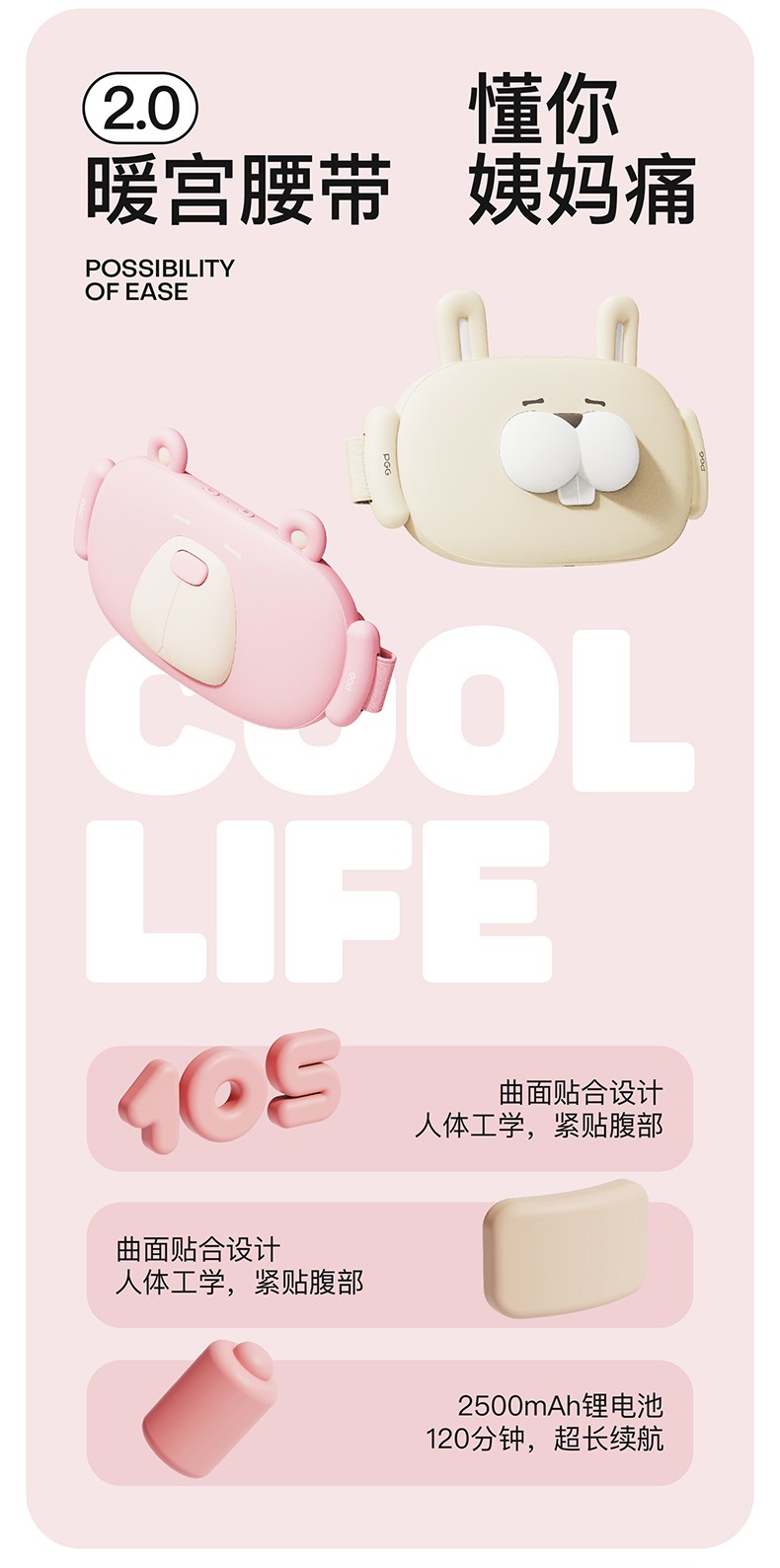 商品名称:(超运·禾贸)PGG N1萌宠暖宫腰带 (震动款2500毫安) 恒温热敷暖肚 生日礼物