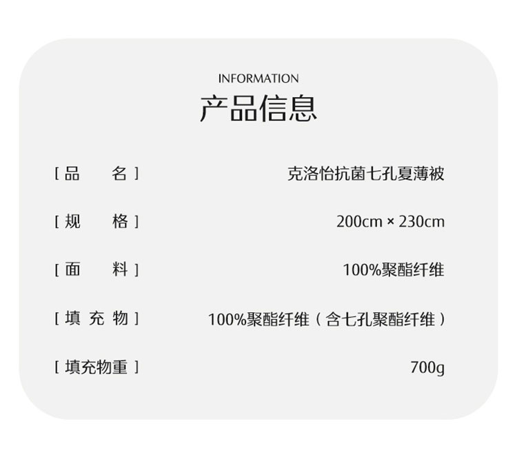 商品名称:(超运·禾贸)水星家纺 克洛怡抗菌七孔夏薄被200*230 被子空调被夏凉被约3.2斤