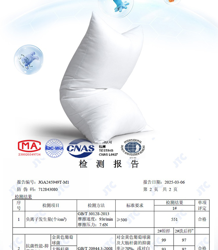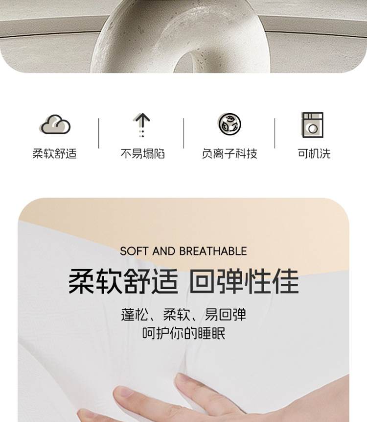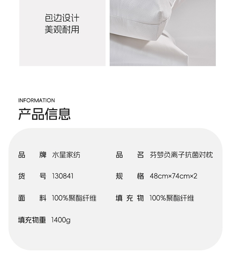 商品名称:(超运·禾贸)水星家纺 芬梦负离子抗菌对枕 枕头舒适枕芯枕头床上用品DH【线下专柜同款】