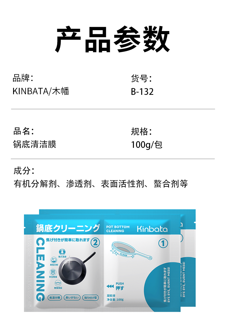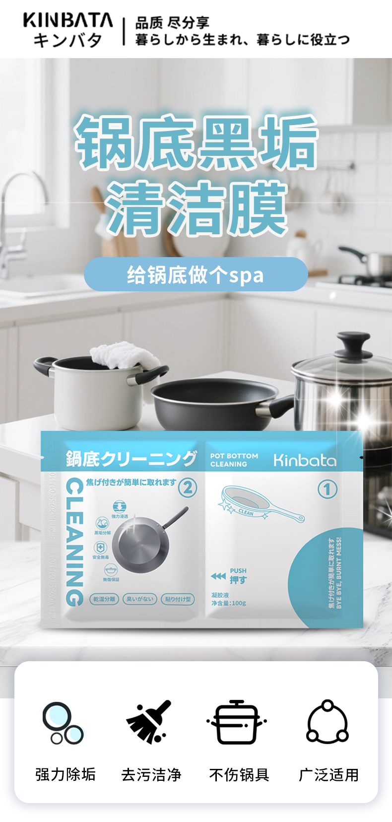 商品名称:(超运·禾贸)KINBATA 锅底清洁片100g*2 黑锅底清洁膜不锈钢清洁铁锅强力去除黑垢