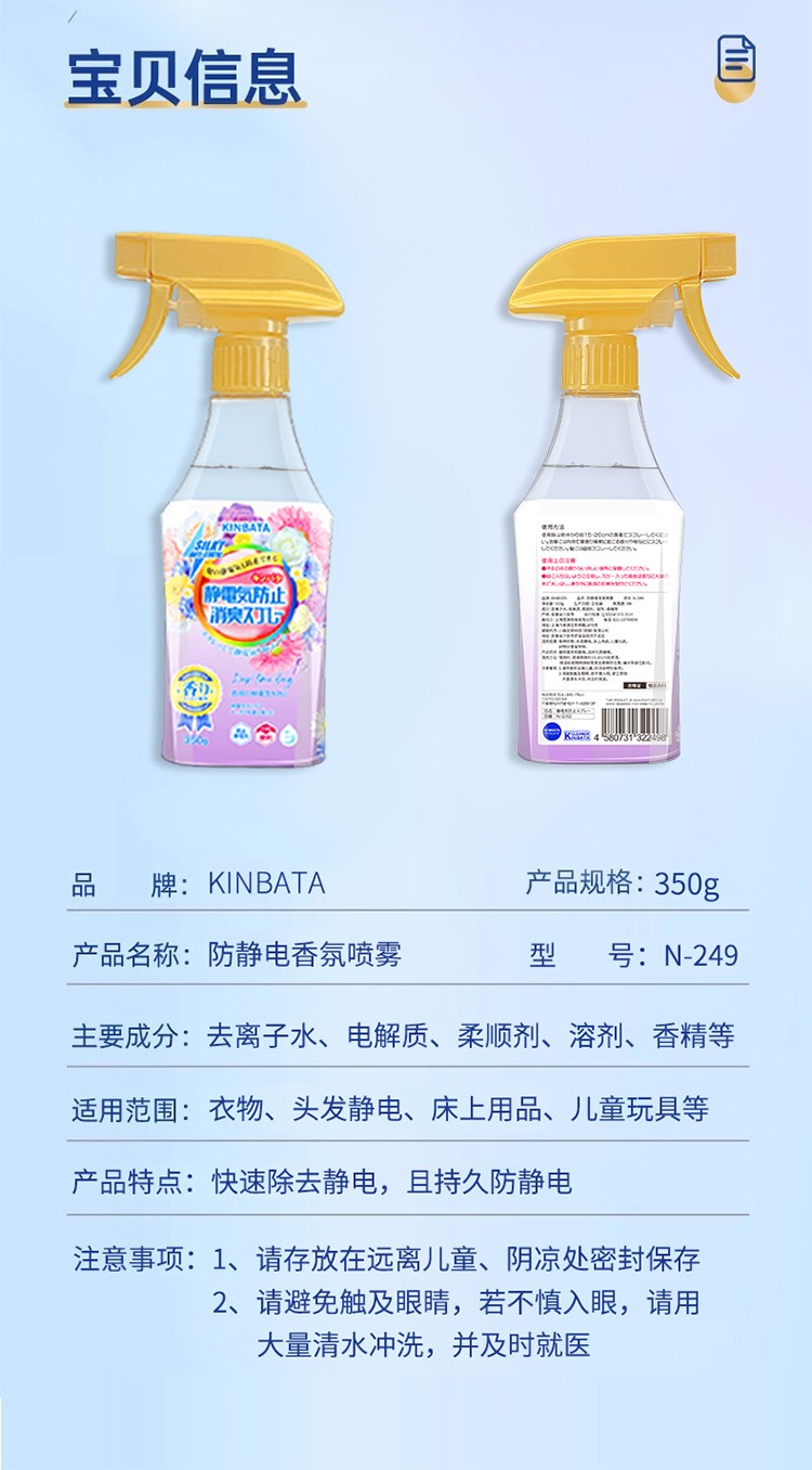 商品名称:(超运·禾贸)KINBATA木幡 防静电香氛喷雾350g*2 衣物香氛喷雾除褶皱去味柔顺衣服留香