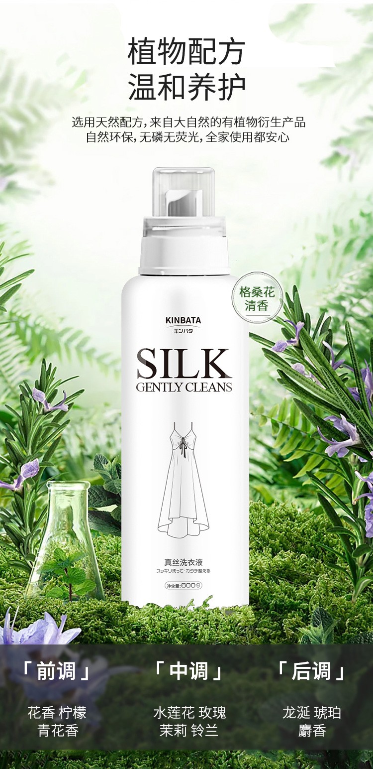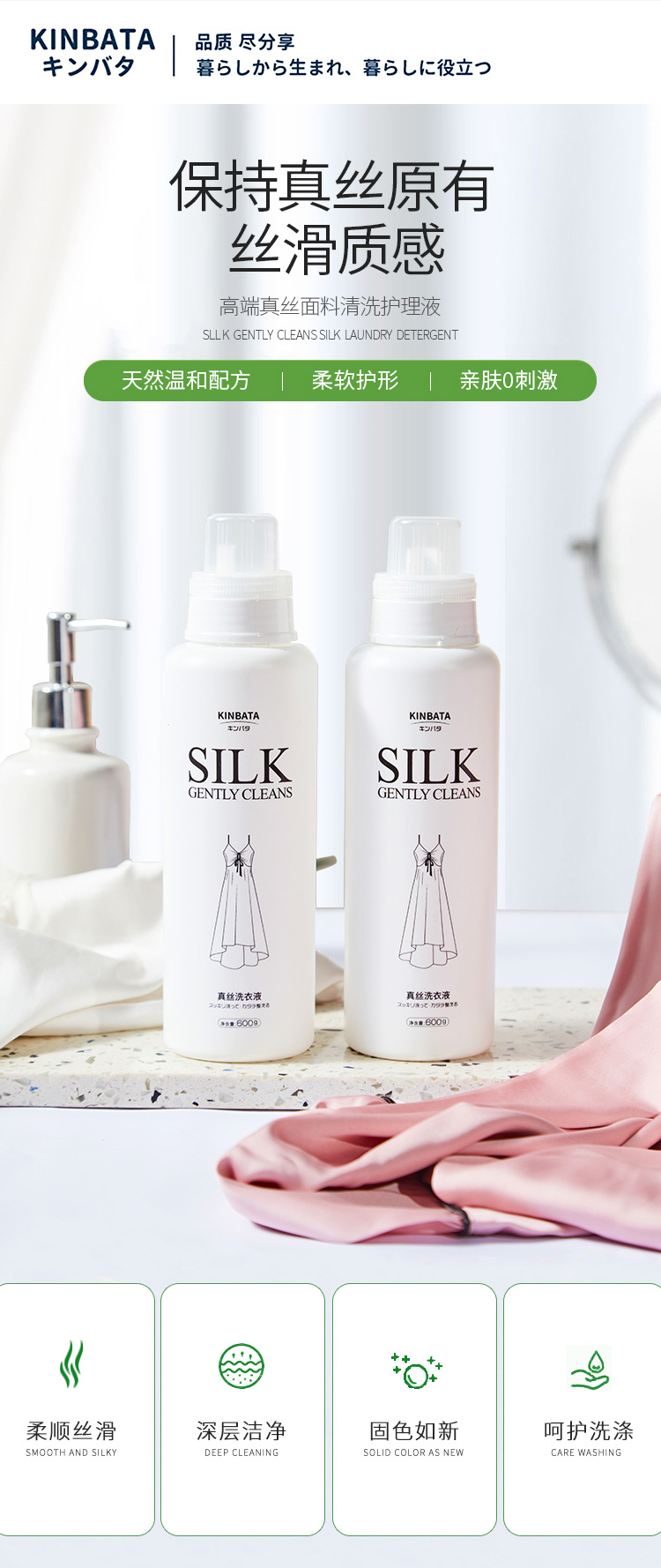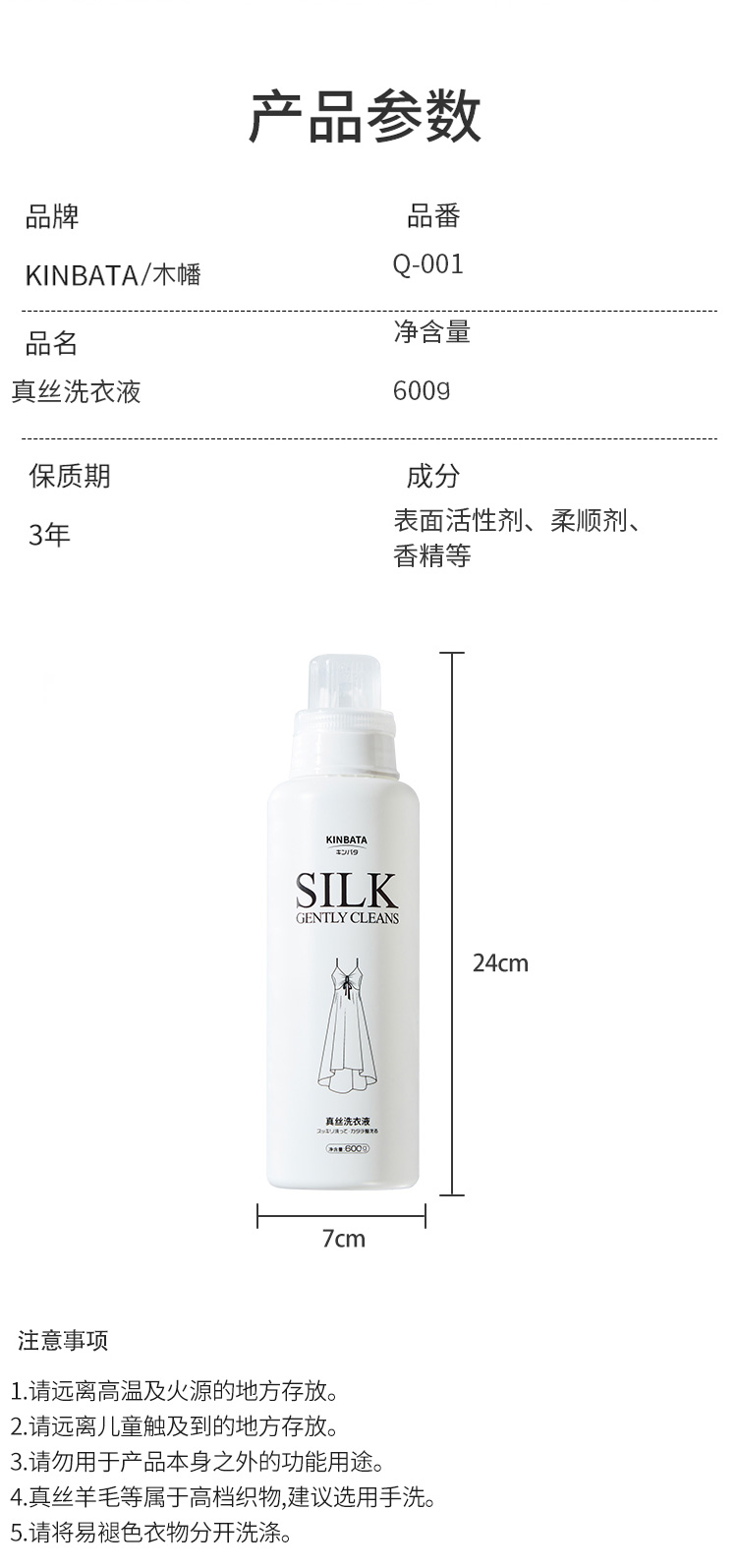 商品名称:(超运·禾贸)KINBATA木幡 真丝洗衣液600ml 桑蚕丝专用洗衣液丝绸手洗丝毛净清洗剂