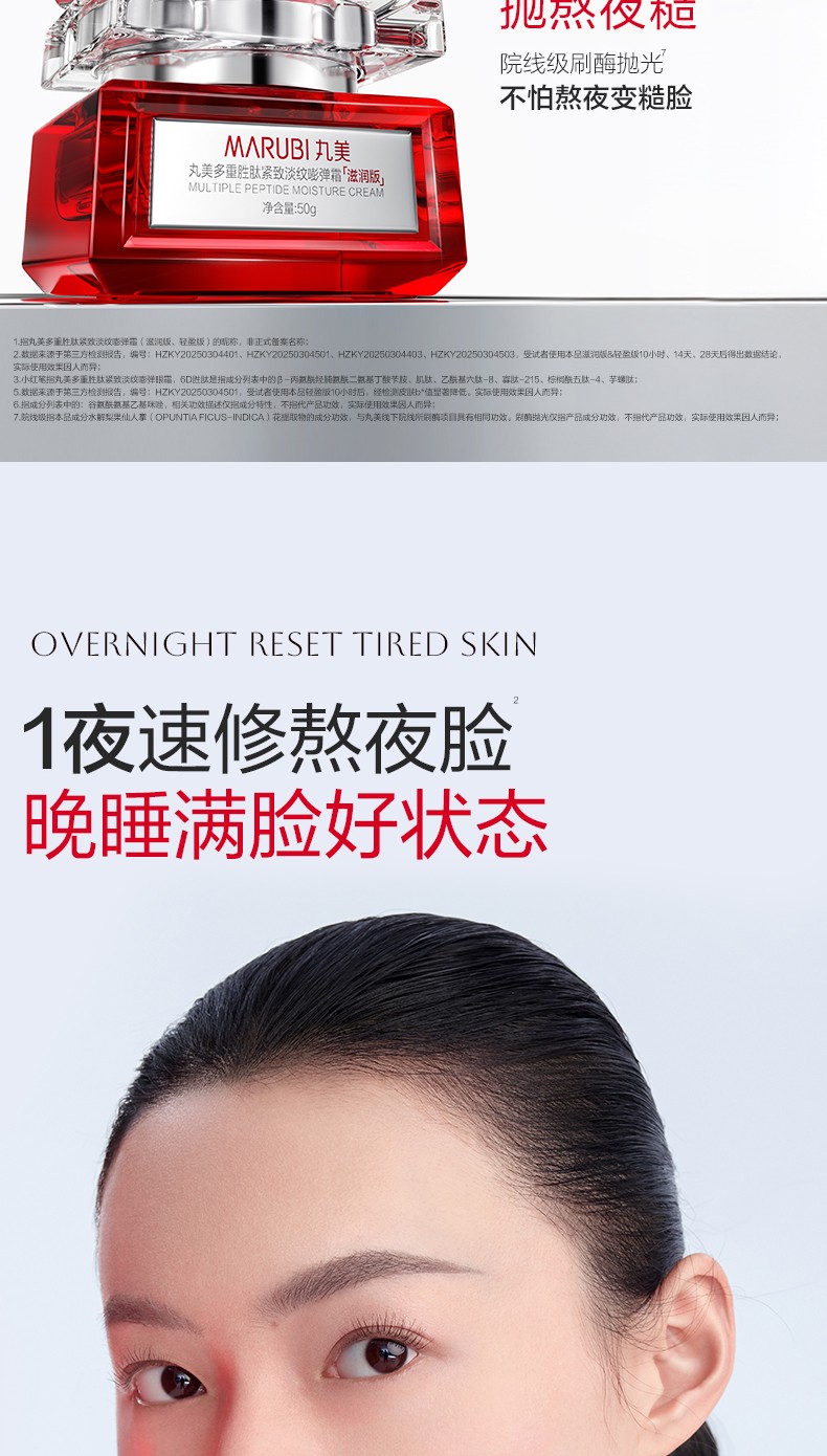 (世星阳光)+丸美 多重胜肽紧致淡纹嘭弹霜(滋润版)50g(赠品丸美多重胜肽紧致淡纹嘭弹霜 (滋润版)25g*2)2周淡化熬夜纹 4周嘭起苹果肌 爆改熬夜肌 年轻一触即发