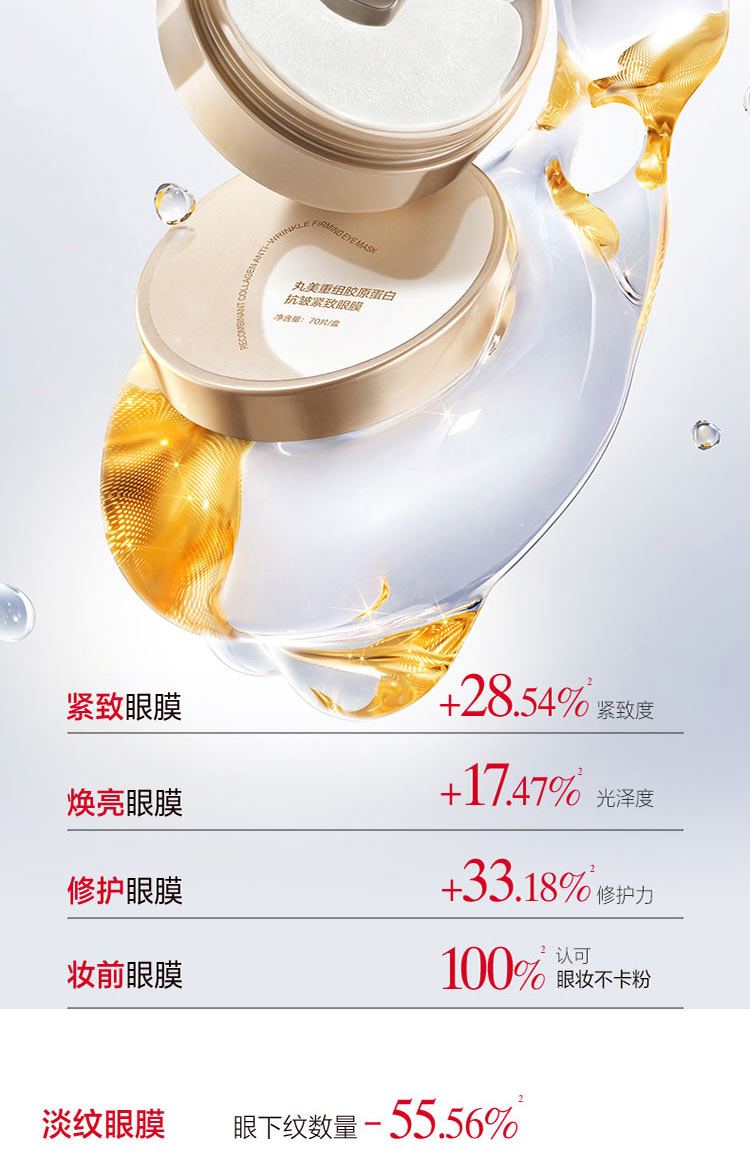 商品名称:(世星阳光)+丸美 重组胶原蛋白抗皱紧致眼膜70片盒 胶原贴贴 15min眼纹减半 以1抵6多效合一 紧致更淡纹