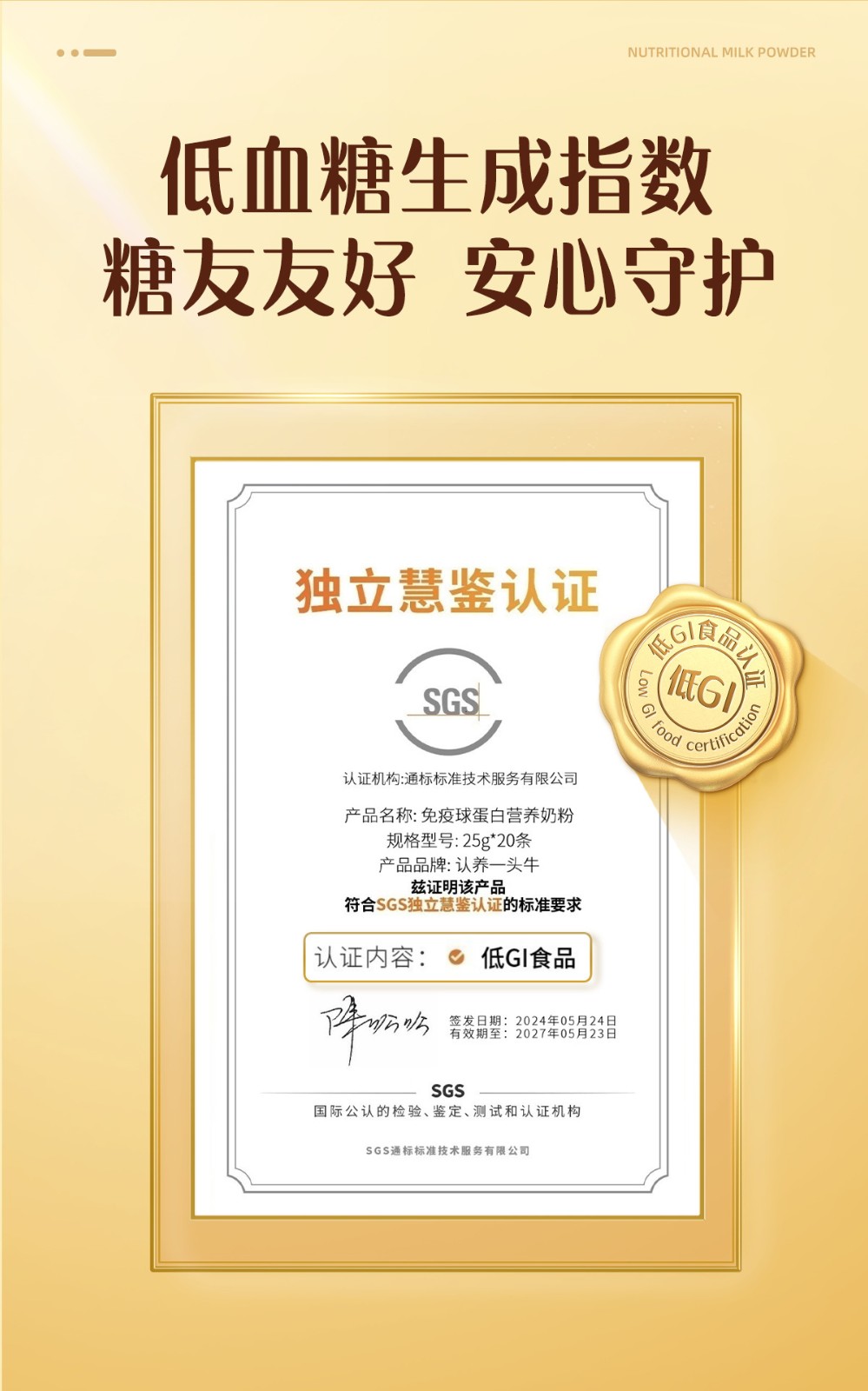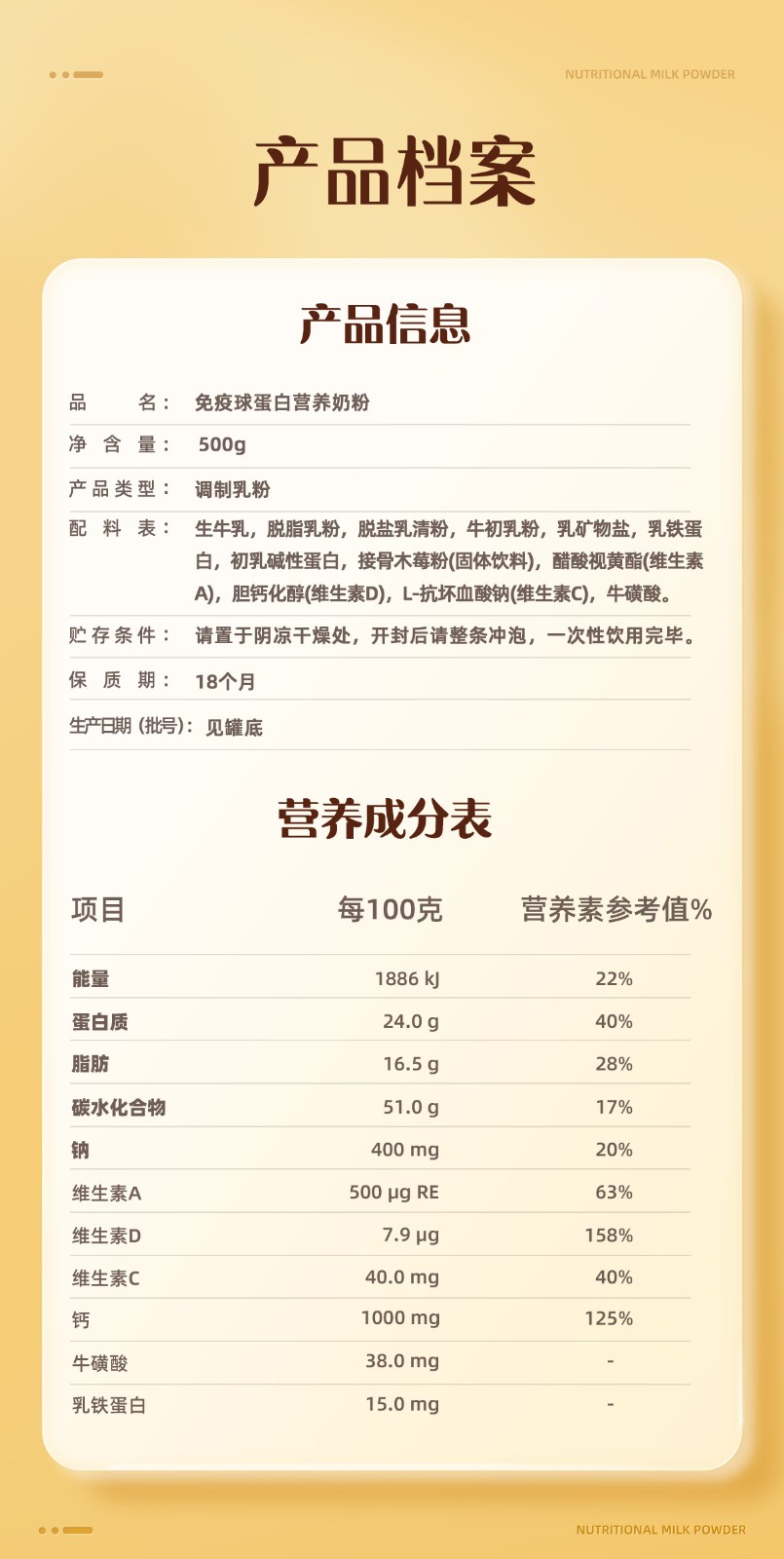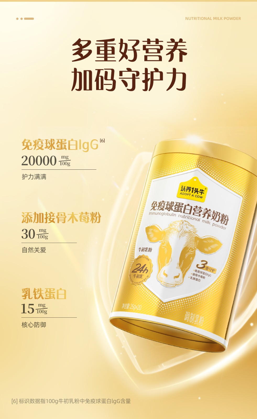 商品名称:(世星阳光) 认养一头牛 免疫球蛋白营养奶粉 500g 含免疫球+乳铁蛋白