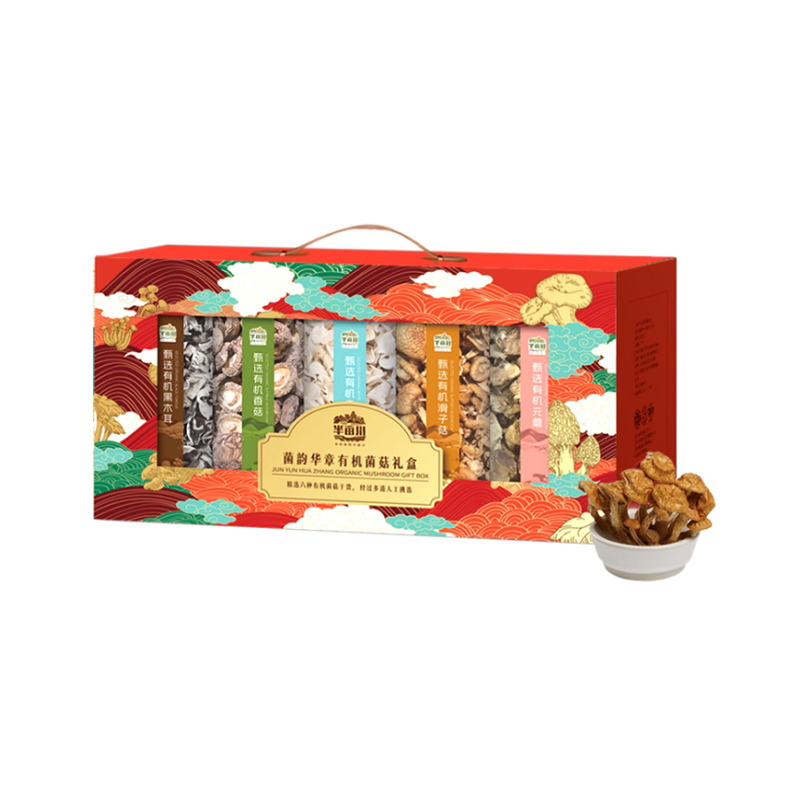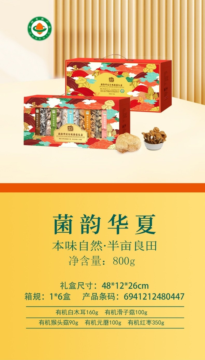 商品名称:(巨邦佑)R+半亩川半亩良田 菌韵华夏有机山珍800g 菌汤包菌菇干货礼盒 煲汤火锅炖鸡料红枣礼盒