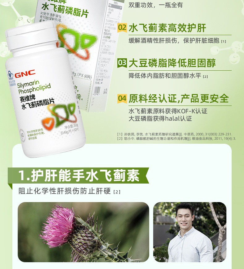 商品名称:(世星阳光)GNC健安喜 赛维牌水飞蓟磷脂片3盒(盒装)180片 蓝帽认证双重功效 护肝能手水飞蓟素 减少血管壁残留脂肪 护肝调血脂 护肝能手水飞蓟素