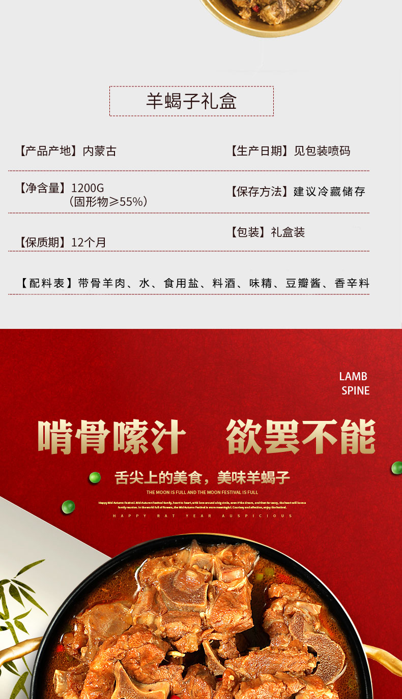 商品名称:(世星阳光)七里浮子 内蒙古羊蝎子(熟制加热即食)1200g 啃骨嗦汁 欲罢不能 舌尖上的美食 美味羊蝎子 高温杀菌 保鲜包装 真空铝箔装 加热即食