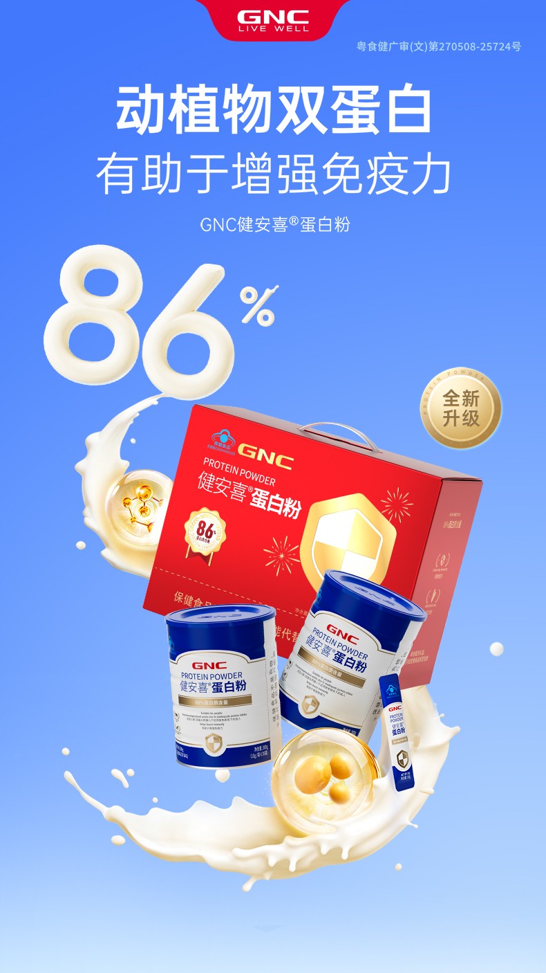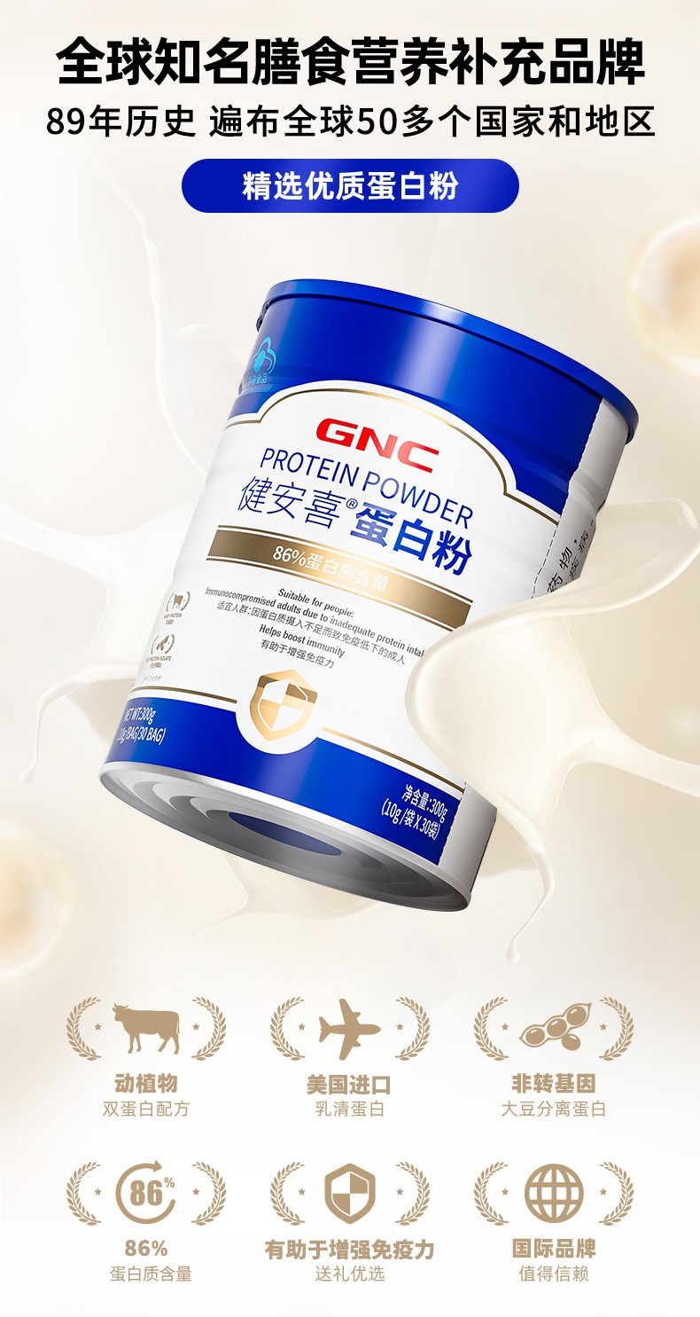 (世星阳光)GNC健安喜 蛋白粉 红礼盒装(300g*2罐)动植物双蛋白 有助于增强免疫力 富含多种人体所需氨基酸 独立条包 方便卫生 防潮好储存 便携好携带