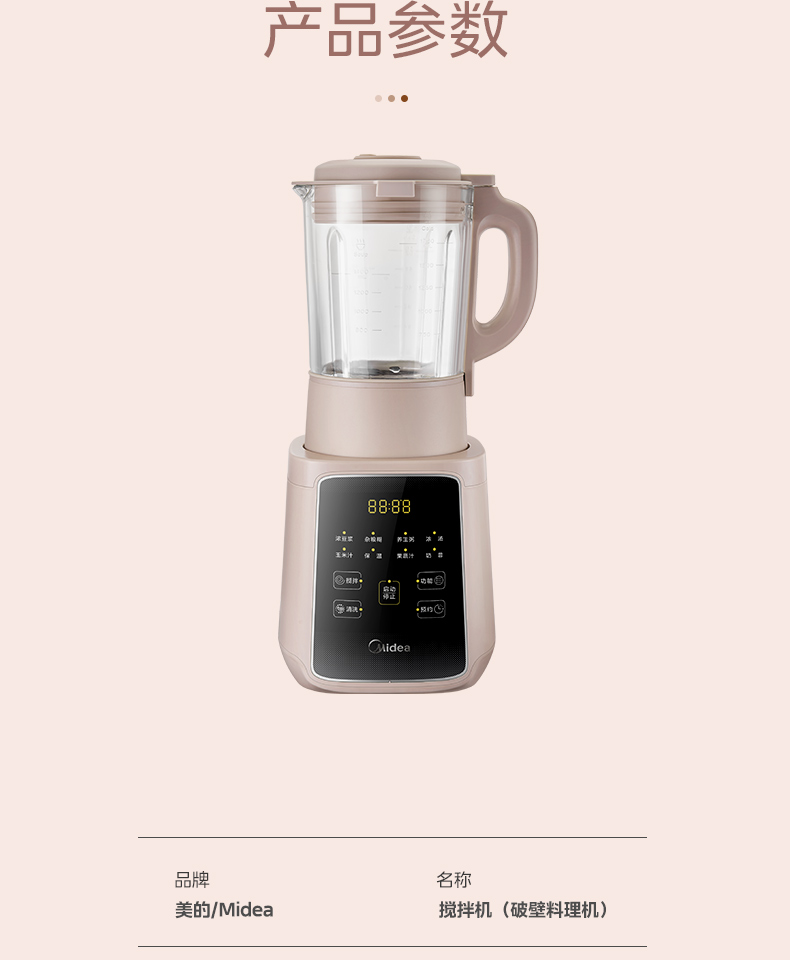 商品名称:(世星阳光)美的 1.75L 破壁机 BL71Q 大触屏 智能菜单 精钢6叶破壁刀片 低音 大功率