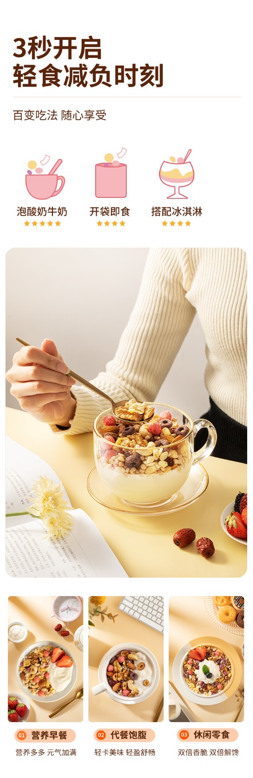 商品名称:(巨邦佑)T+ (yp)好麦多坚果缤纷益生元水果麦片220g 2袋装