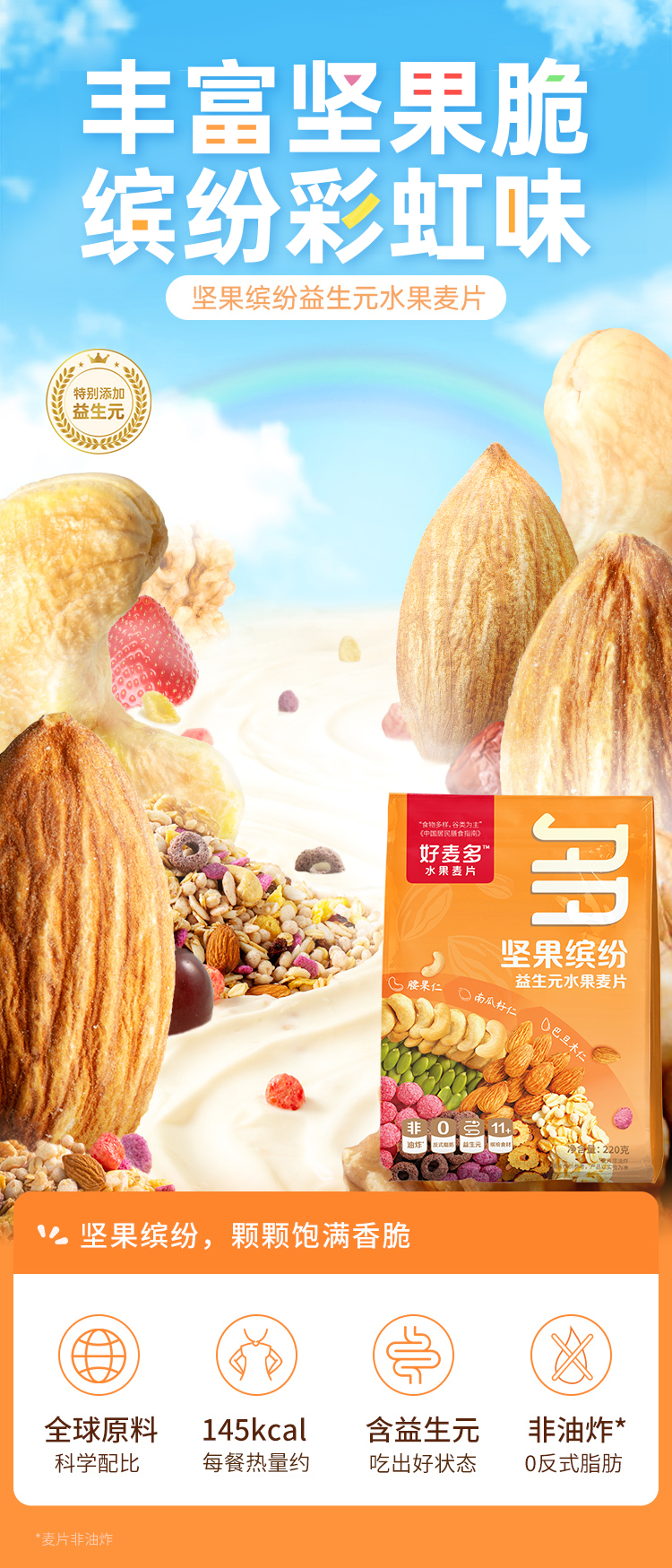 商品名称:(巨邦佑)T+ (yp)好麦多草莓缤纷水果麦片220g*1+坚果缤纷水果麦片220g*1