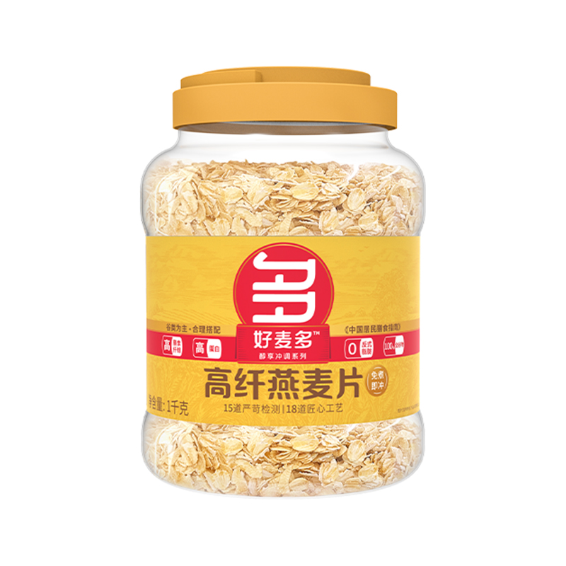 (巨邦佑)T+ (yp)好麦多高纤燕麦片1000g 粥糯即食纯燕麦片 高膳食纤维 无0添加蔗糖 冲饮早餐谷物代餐健身 桶装