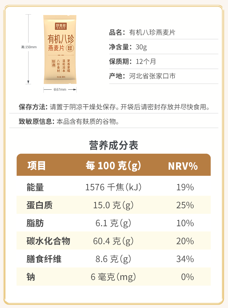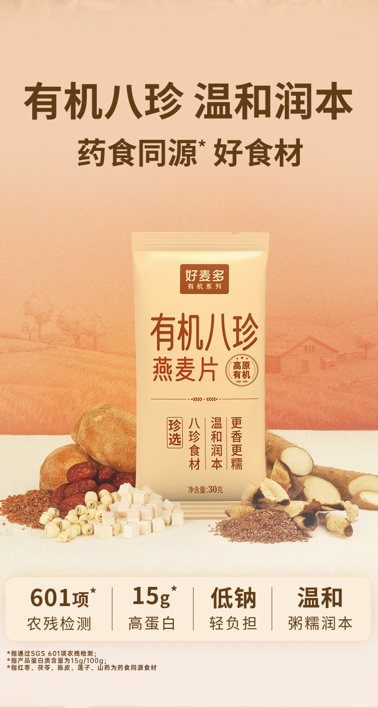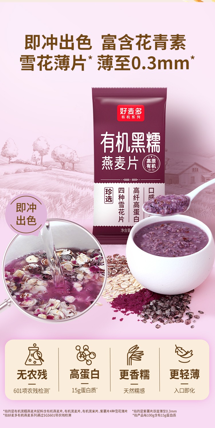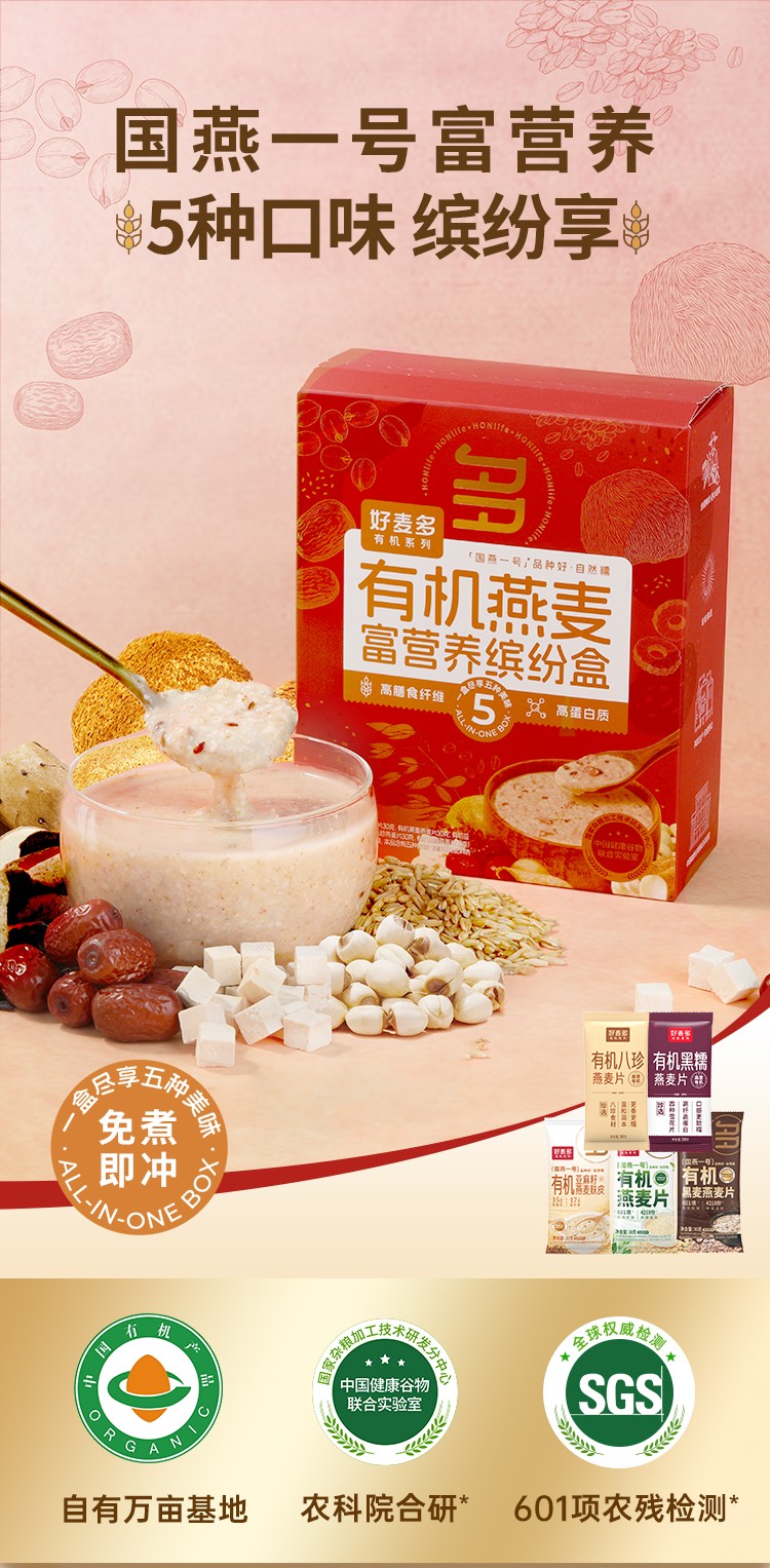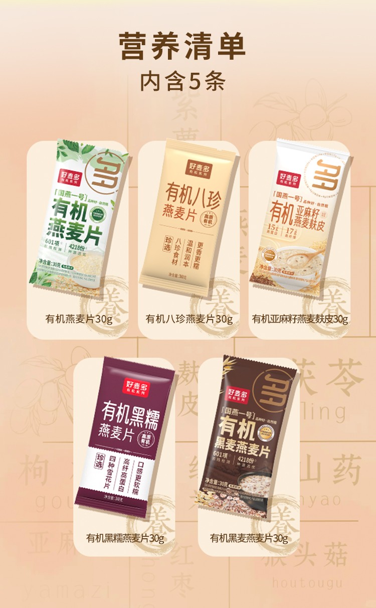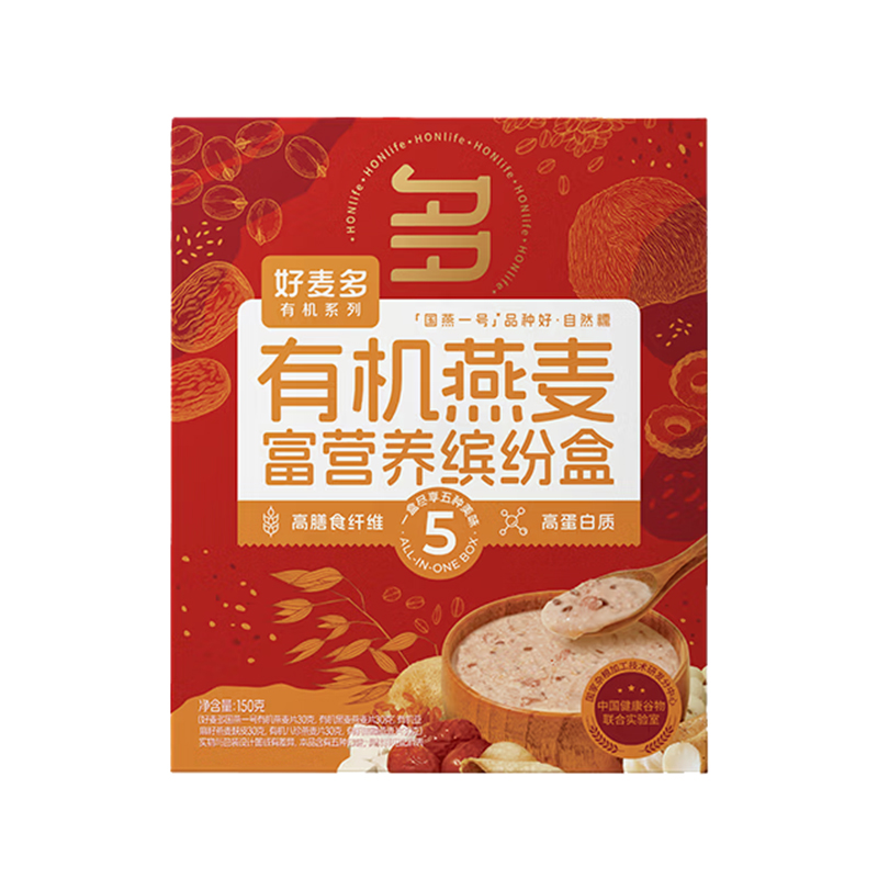 商品名称:(巨邦佑)T+ (yp)好麦多有机燕麦富营养缤纷盒可携式包装八珍黑糯 有机燕麦缤纷盒150g*3