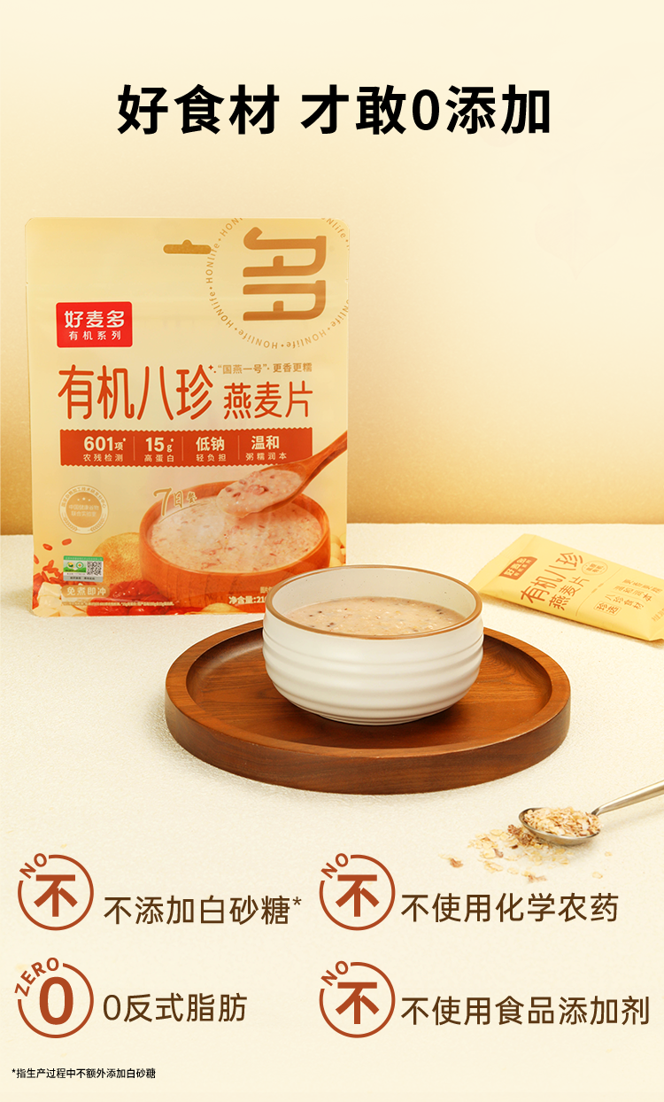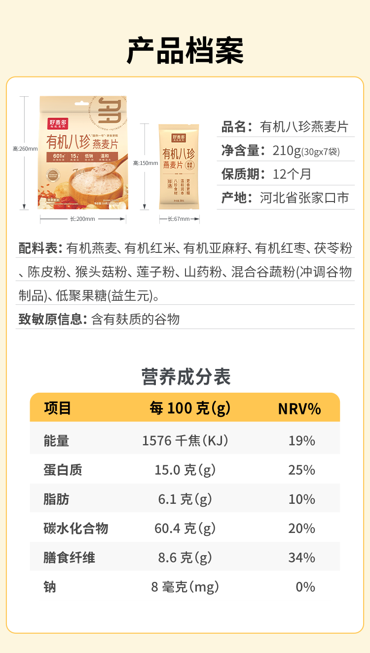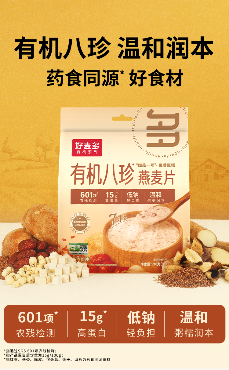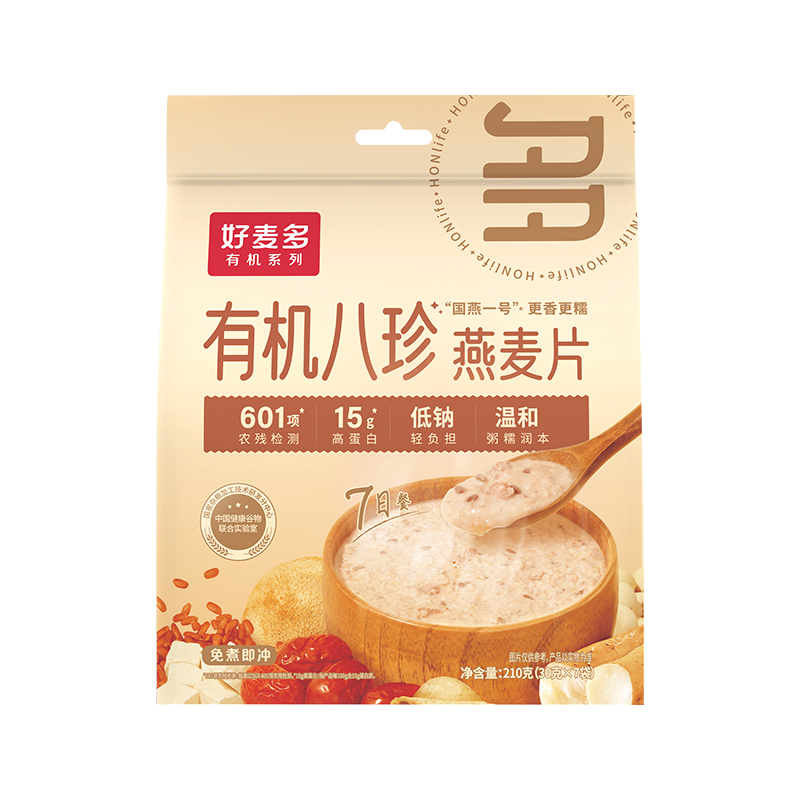 商品名称:(巨邦佑)T+ (yp)好麦多农科院有机八珍即食燕麦片轻食营养无0添加蔗糖中老年人早餐送礼 有机八珍210g*3