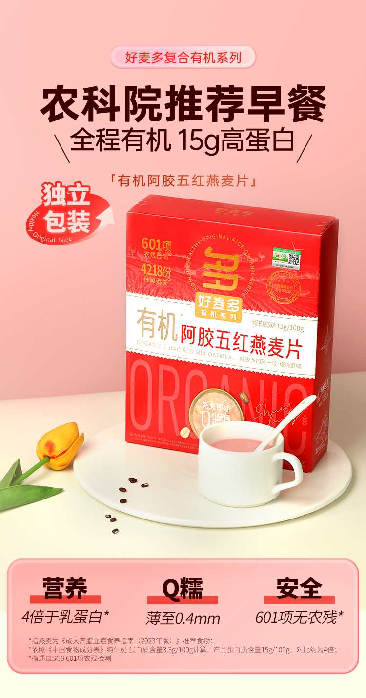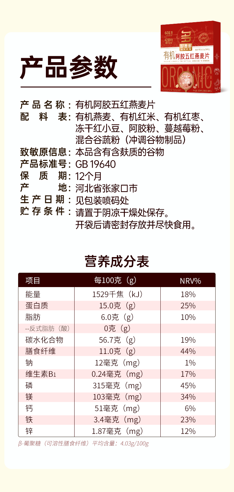 商品名称:(巨邦佑)T+ (yp)好麦多有机阿胶五红燕麦300g 农科院推荐孕妇即食麦片有机燕麦片儿童营养早餐代餐健身原味黑麦 阿胶养桃花颜