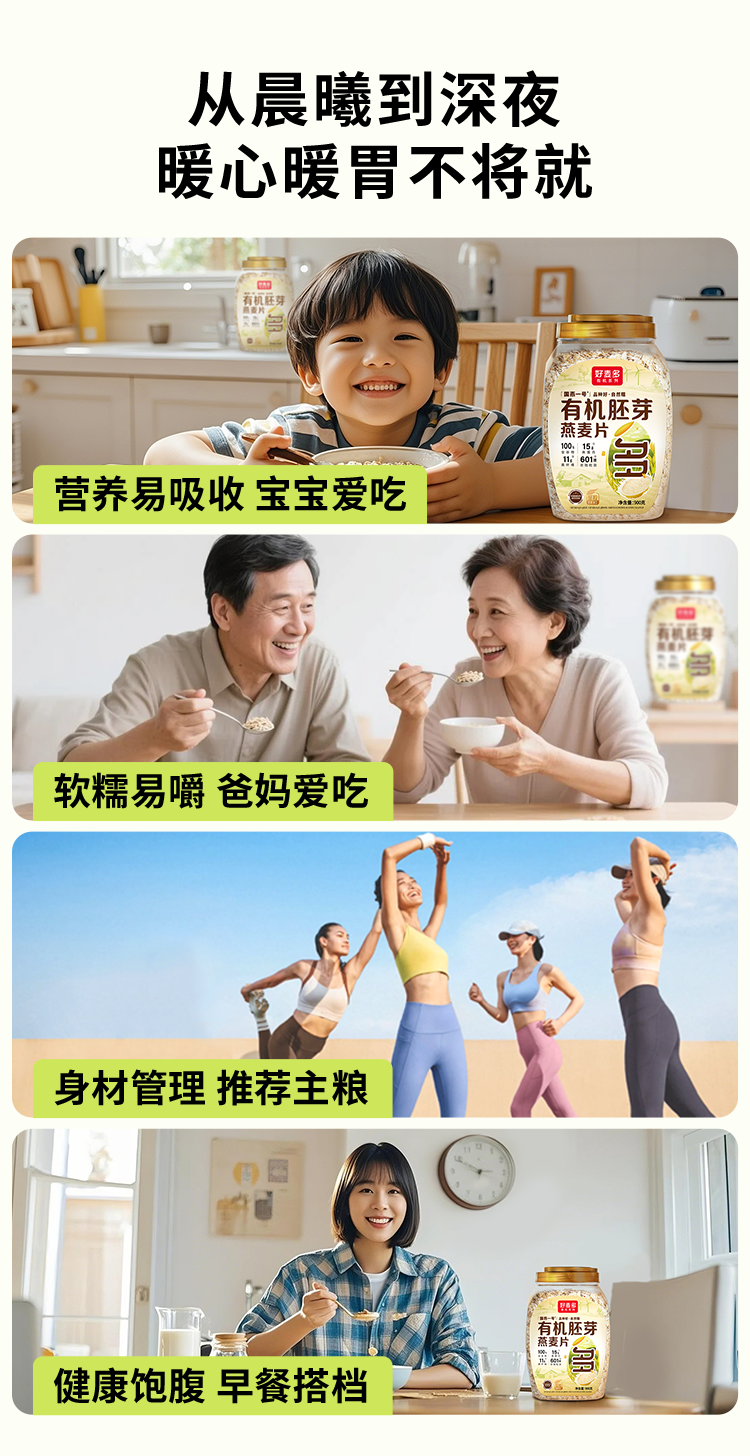 (巨邦佑)T+ (yp)好麦多有有机胚芽燕麦片 900g 高蛋白营养冲泡即食代餐轻食早餐0无添加蔗糖 营养多20%