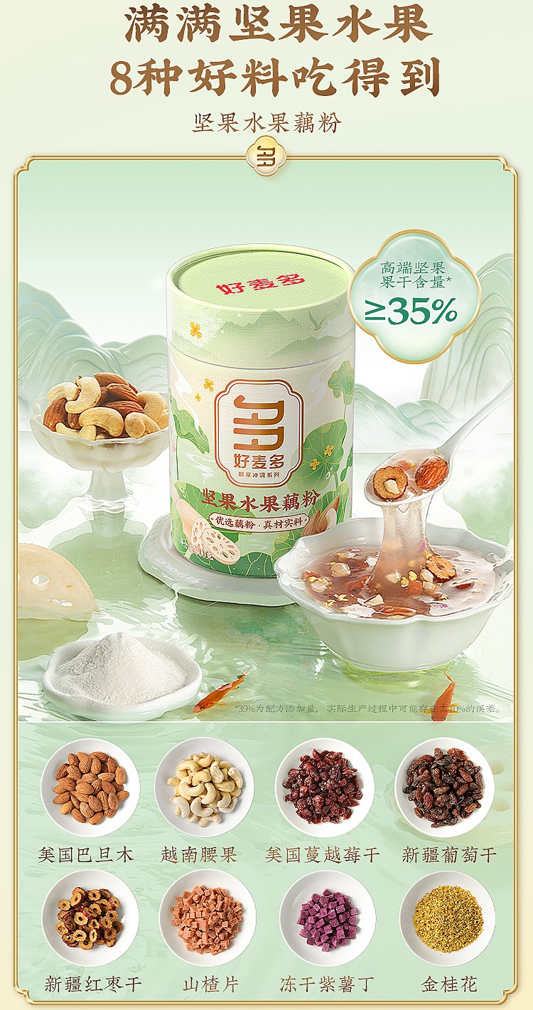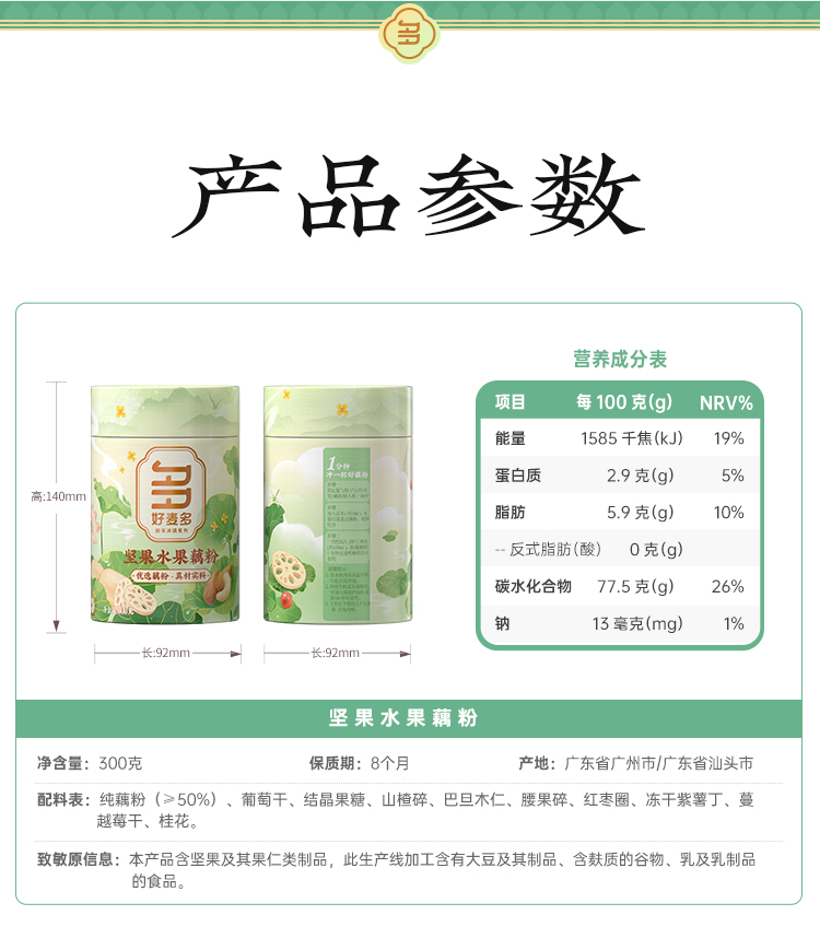 商品名称:(巨邦佑)T+ (yp)好麦多坚果水果藕粉300g 营养早餐代餐懒人冲泡