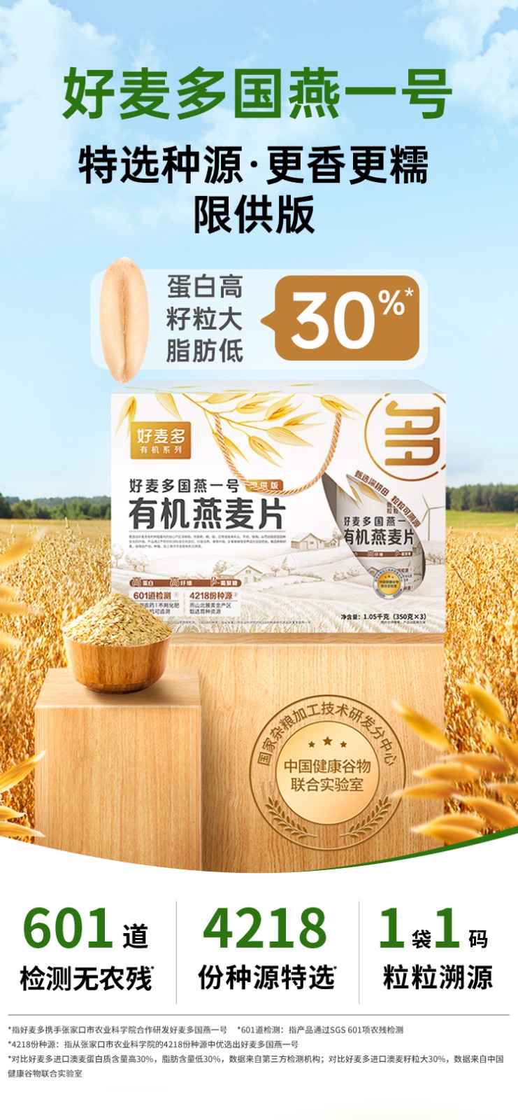 (巨邦佑)T+ (yp)好麦多高铁燕麦人参猴头菇粉 1050g 营养早餐代餐即食有机礼盒送长辈老人过节 国燕一号有机燕麦片礼盒(限供版)